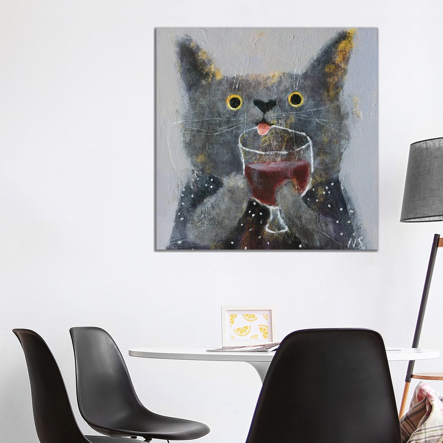 iCanvas "The Cat With Glass of Wine" by Natalia Shaloshvili Canvas Print
