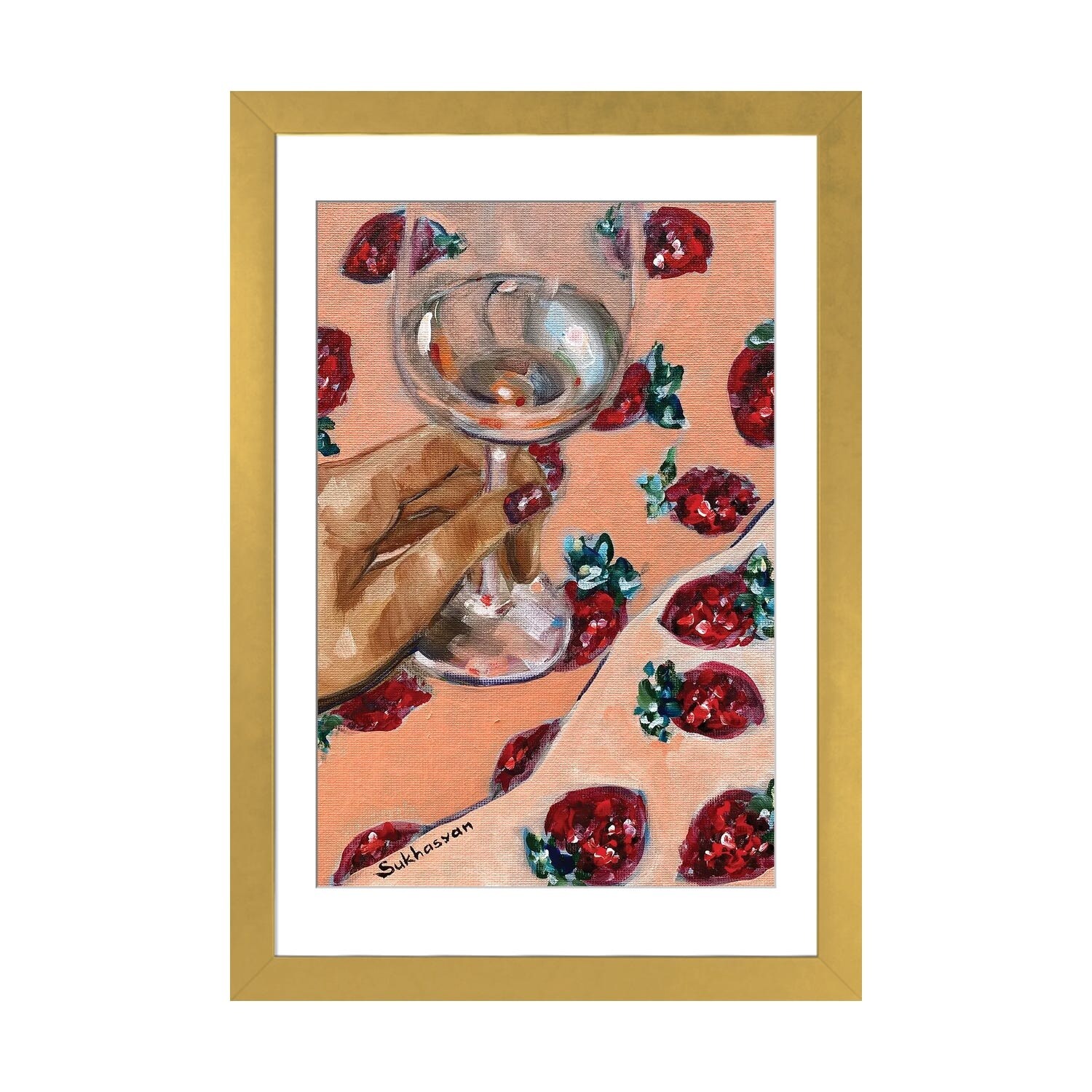 iCanvas "The Glass of Wine And Glittery Strawberries" by Victoria Sukhasyan