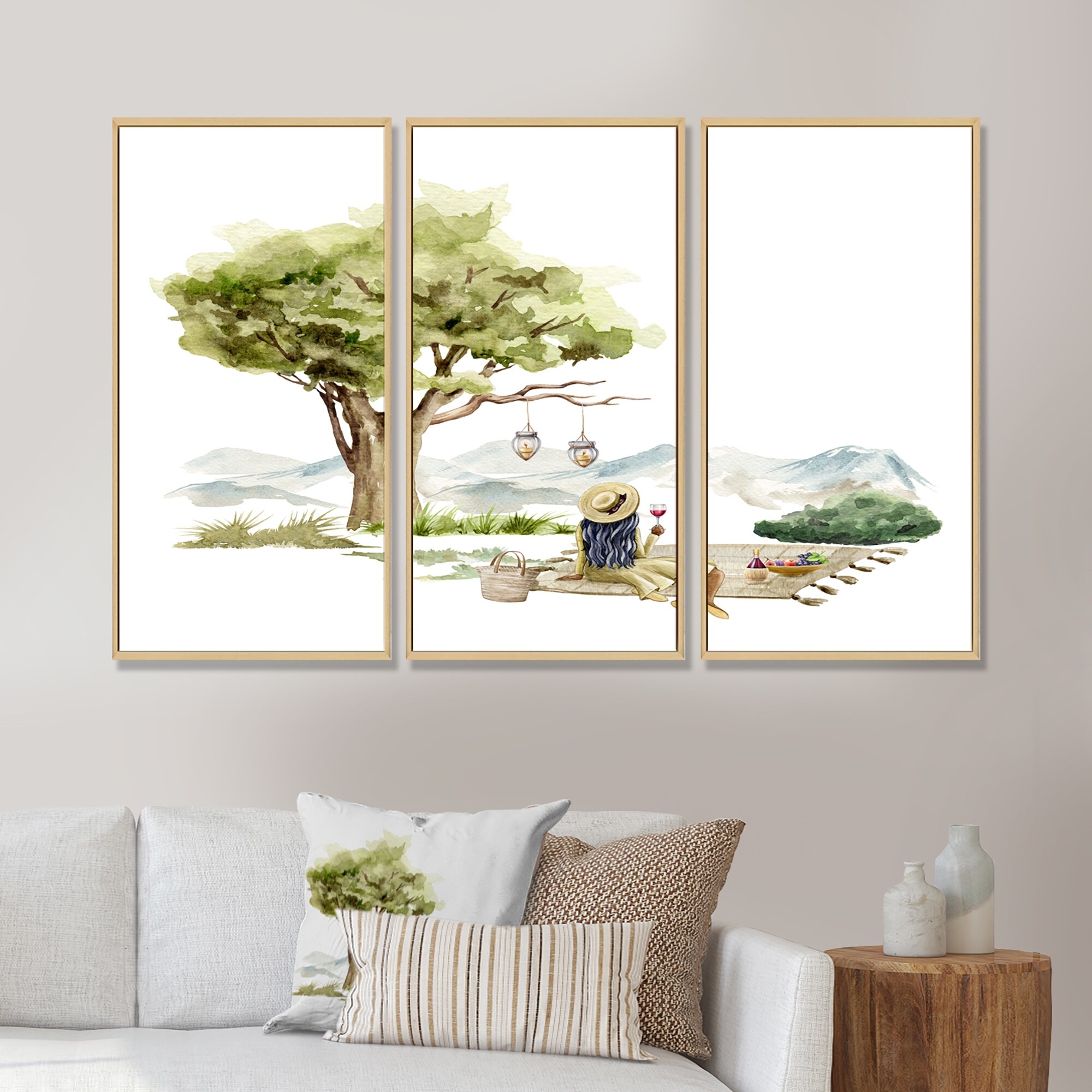 Designart "Young Girl Sitting With A Glass of Wine Under Tree" Country Framed Wall Art Set of 3 - 4 Colors of Frames