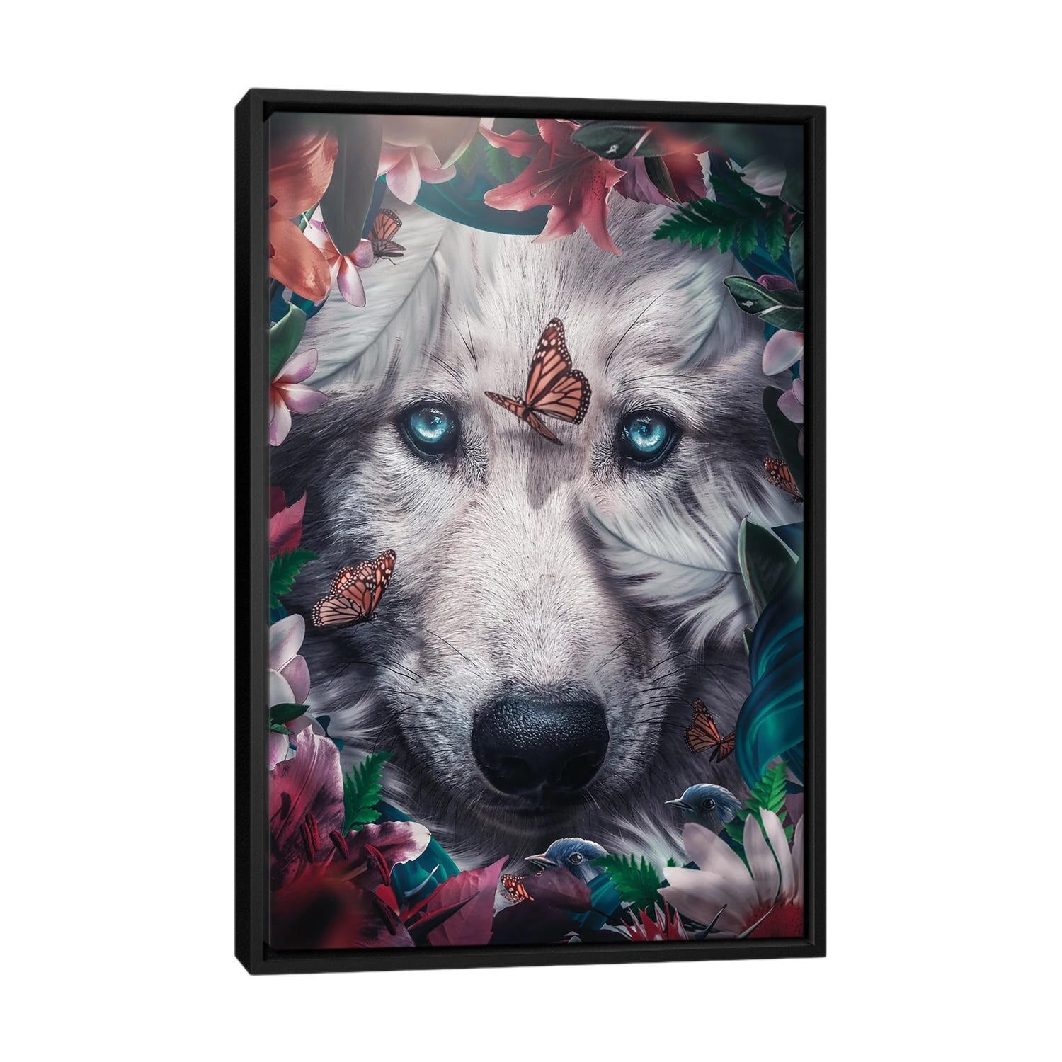 iCanvas "Floral Wolf" by Zenja Gammer Framed Canvas Print