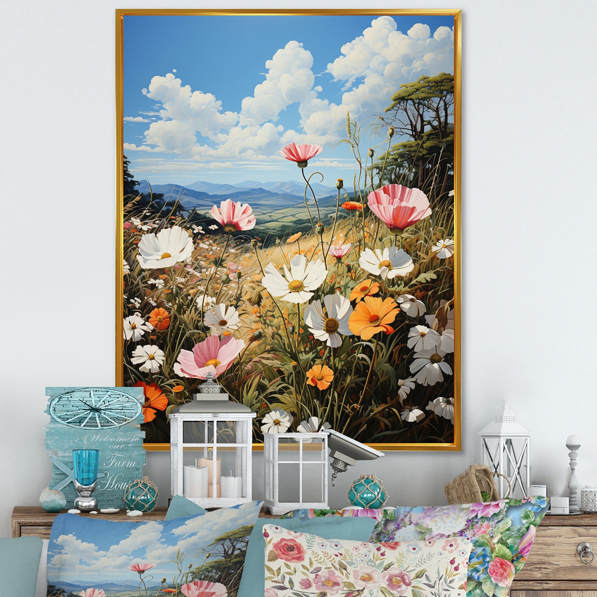 Designart "White Pink Wildflowers Wonder" Wildflowers Framed Wall Art Prints