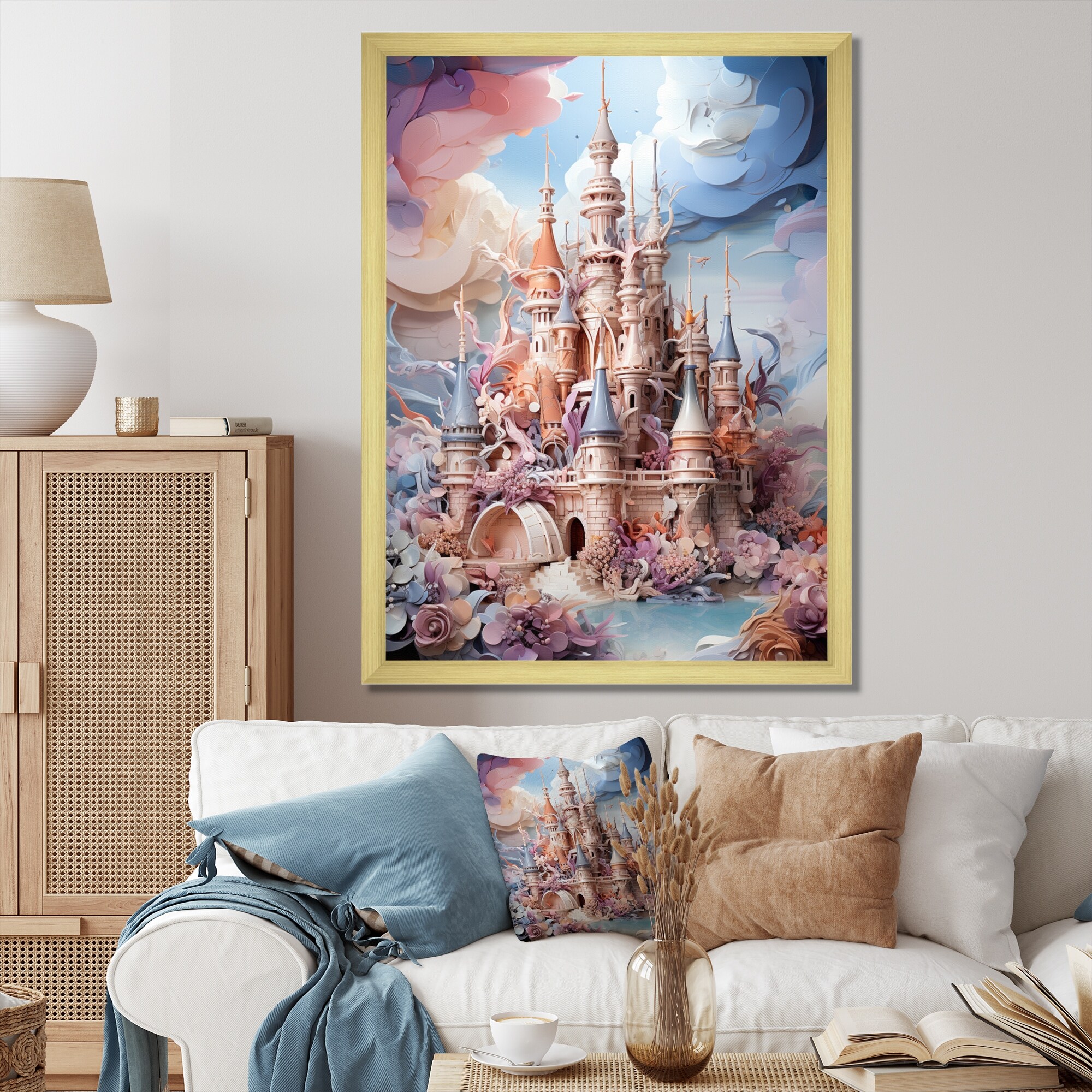Designart "Castles Whimsical Wonder Pastel II" Castles Framed Canvas Art Print