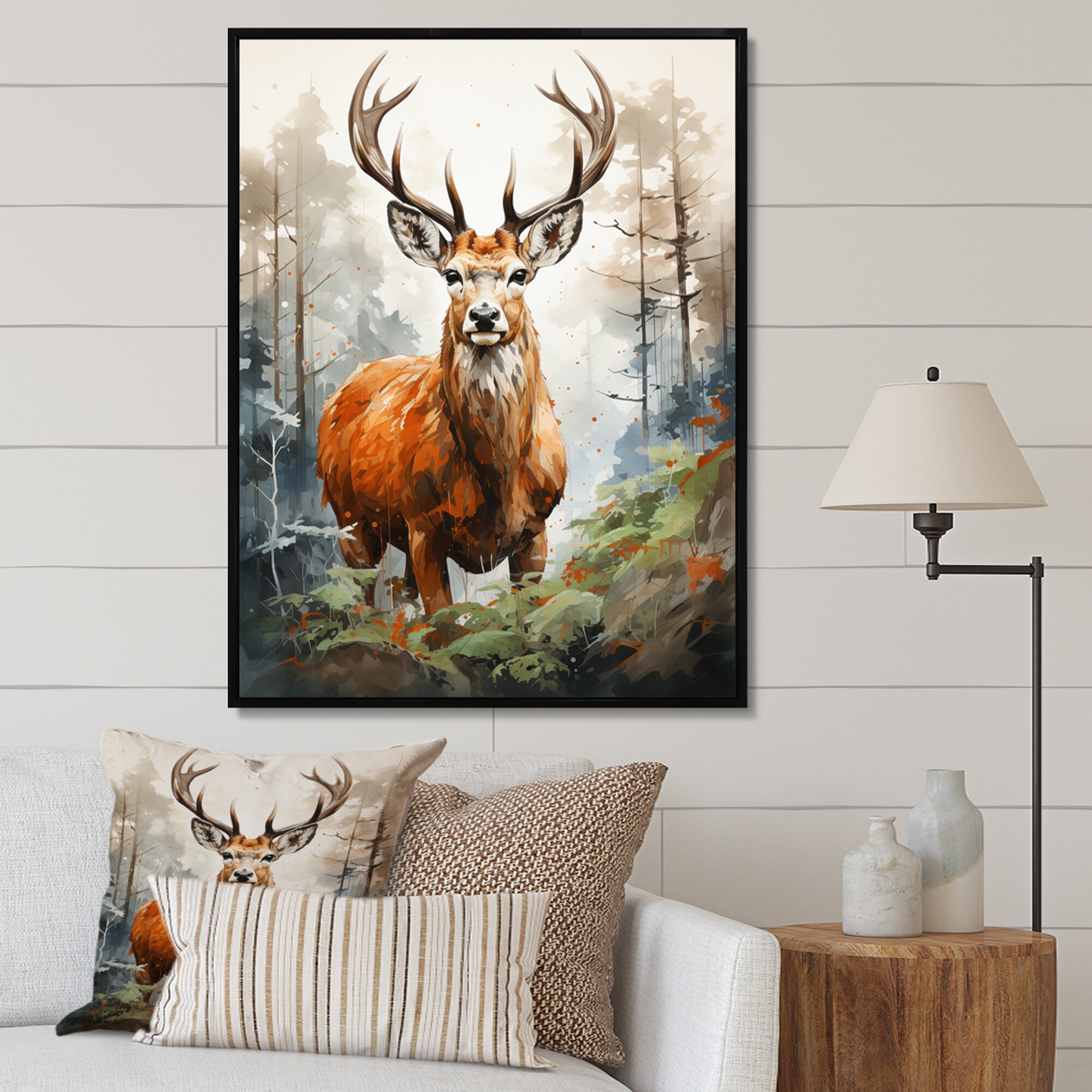 Designart "Deer Wonderers IV" Animals Deer Framed Canvas Print