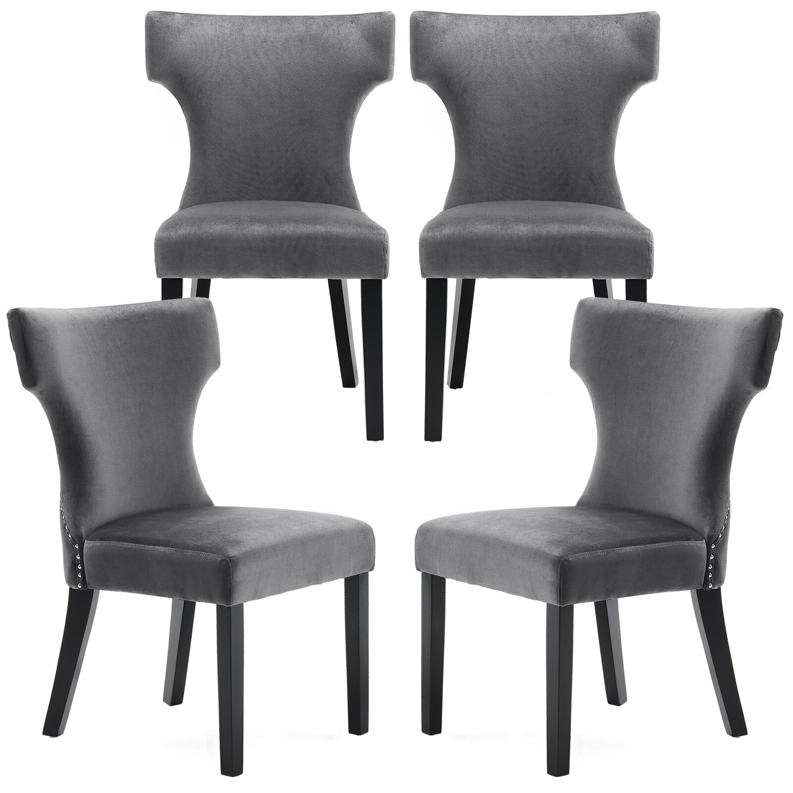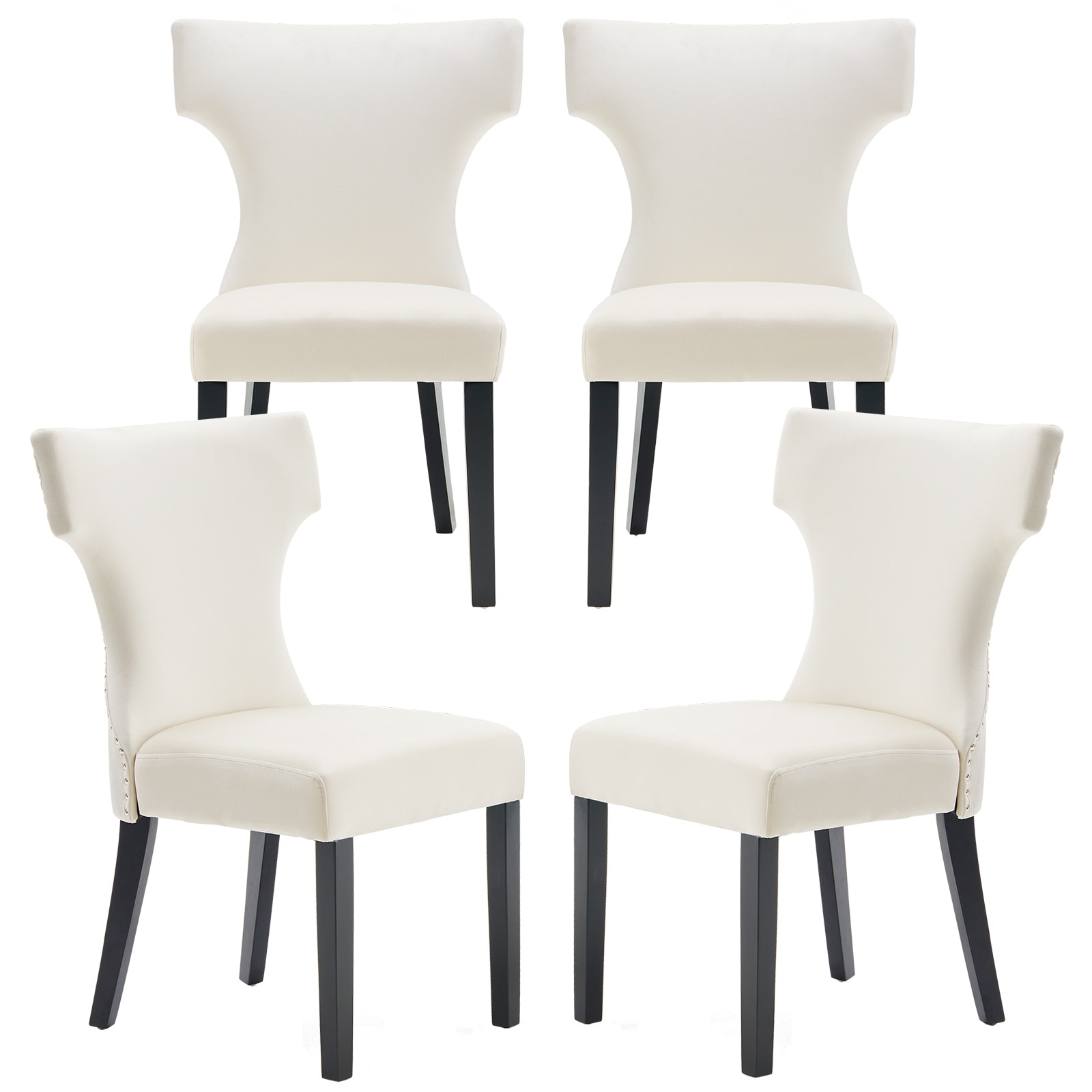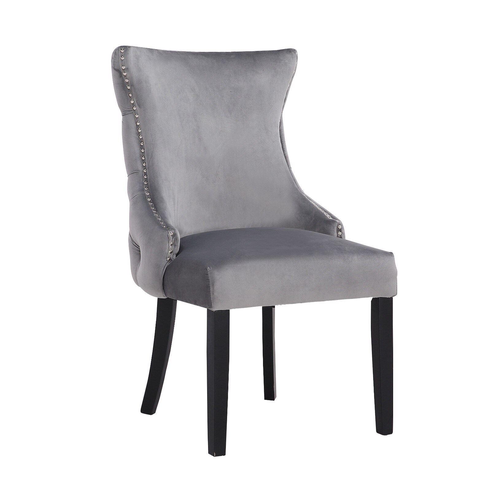 Modern Velvet Upholstered Dining Chairs with Nailheads Solid Wood Legs, Set of 2