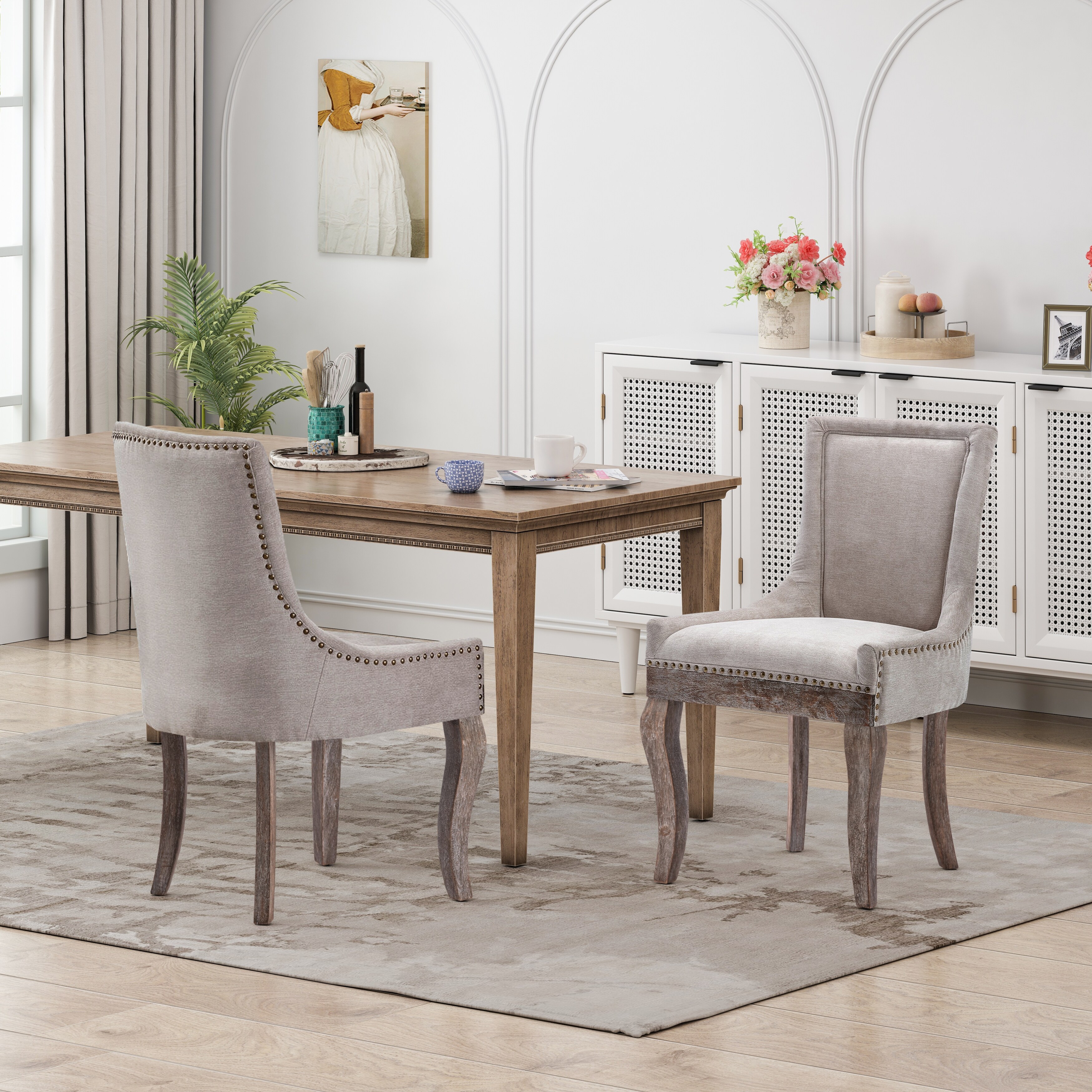 Thickened fabric chairs with neutrally toned solid wood legs Set of 2