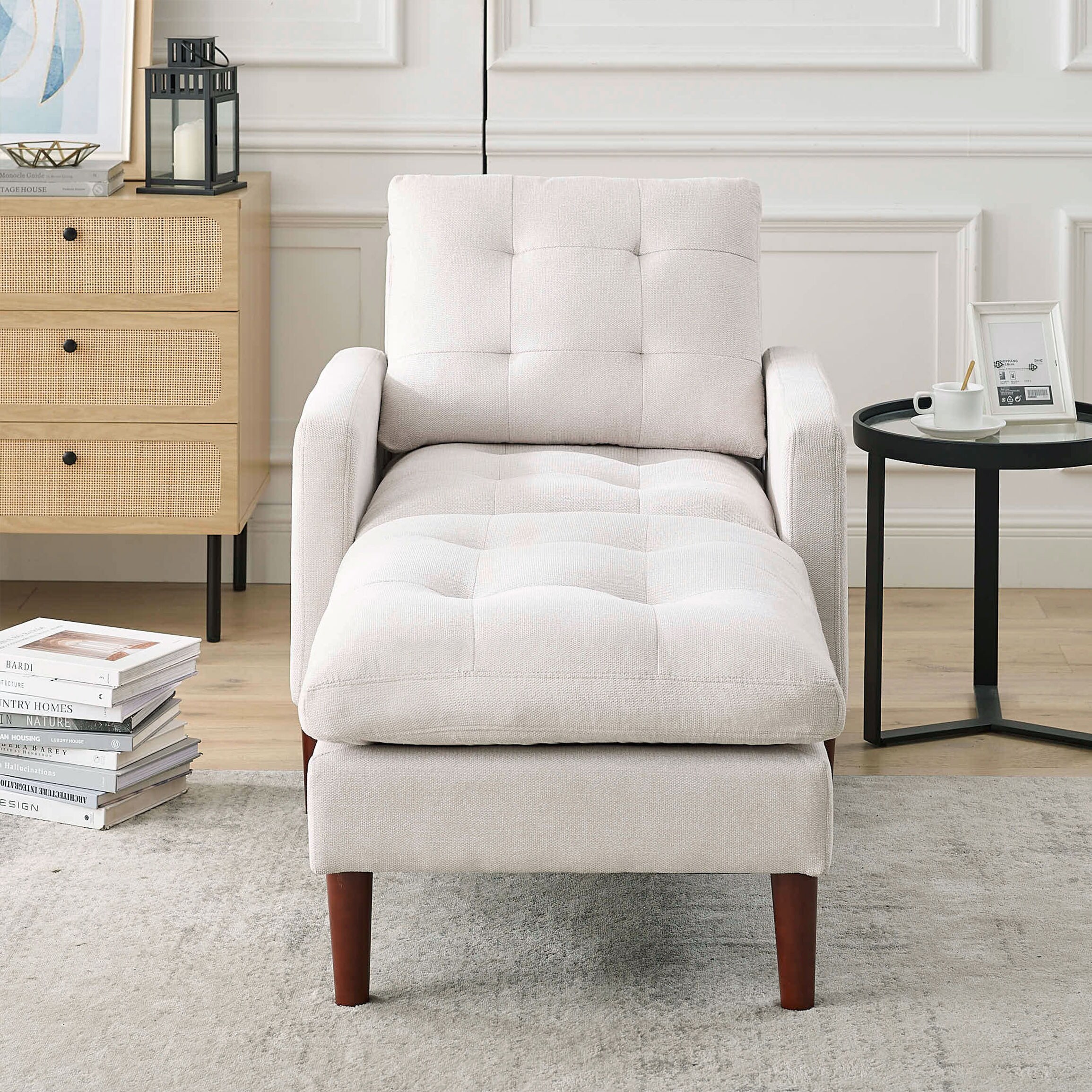 29.5" Polyester Accent Chair with Button Tufted Cushion and Wood Legs