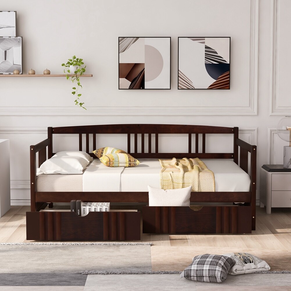 Twin Size Daybed Wood Bed with Two Drawers