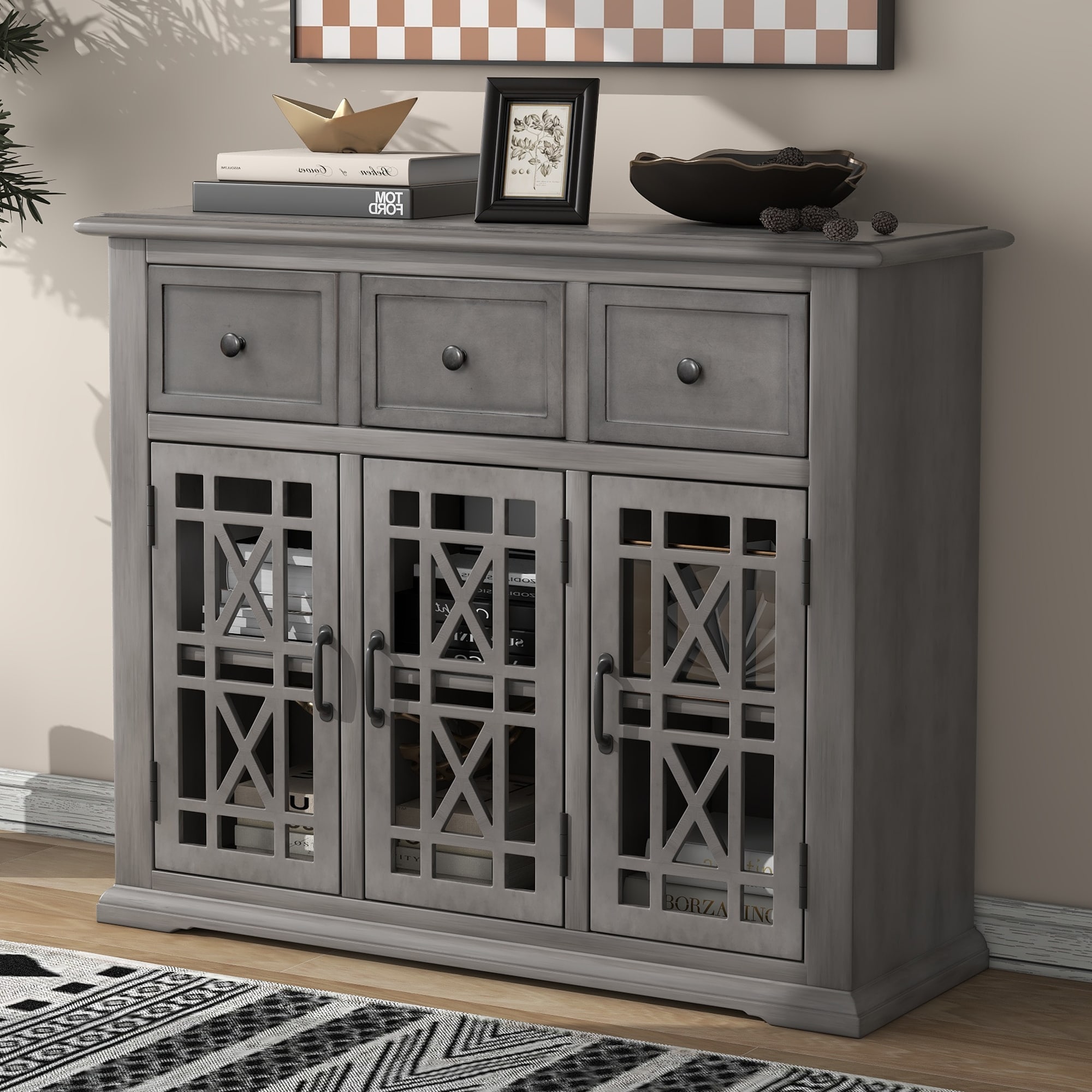 Wood Storage Cabinet with 3 Doors 3 Drawers and Shelf