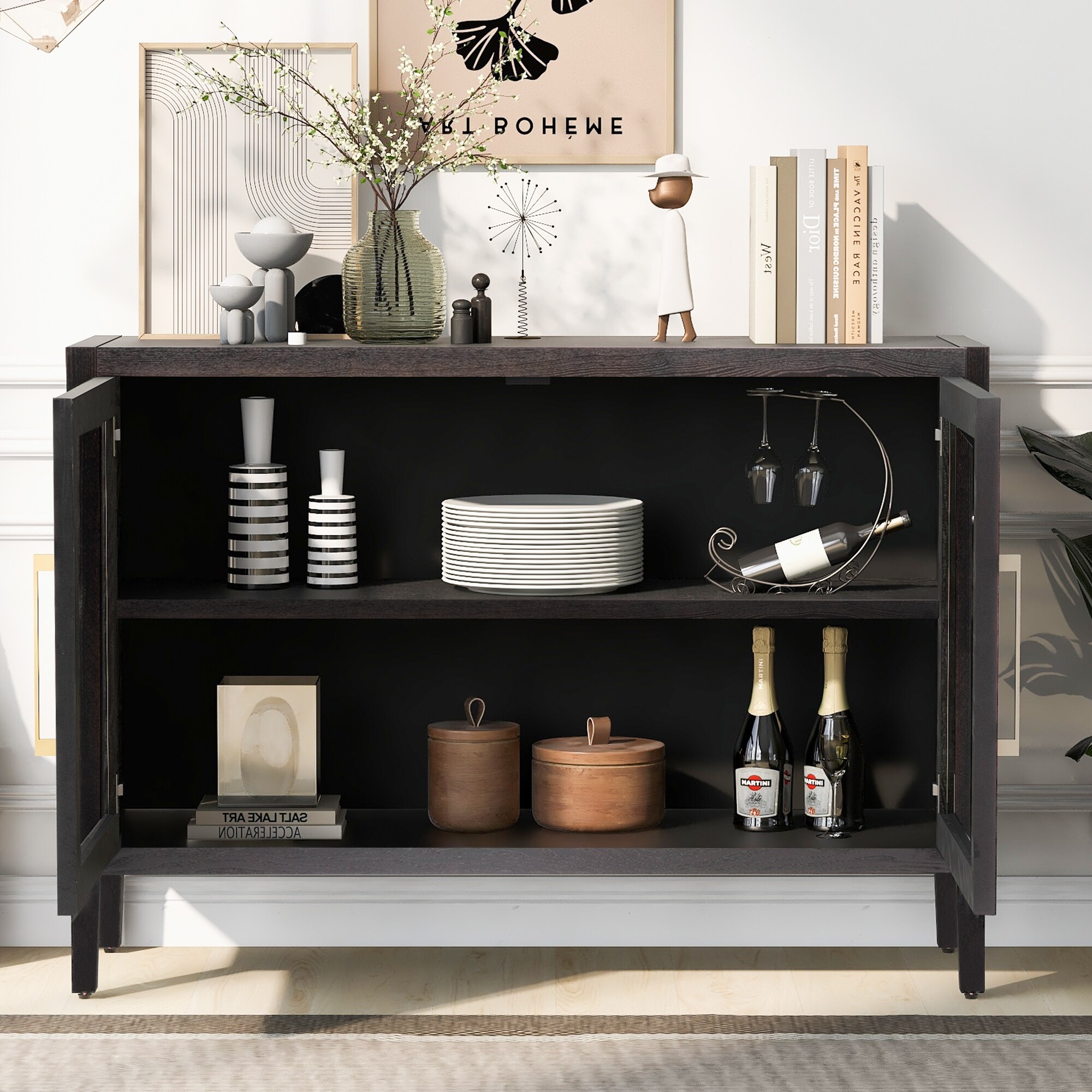 Wood Storage Cabinet with Doors and Adjustable Shelf