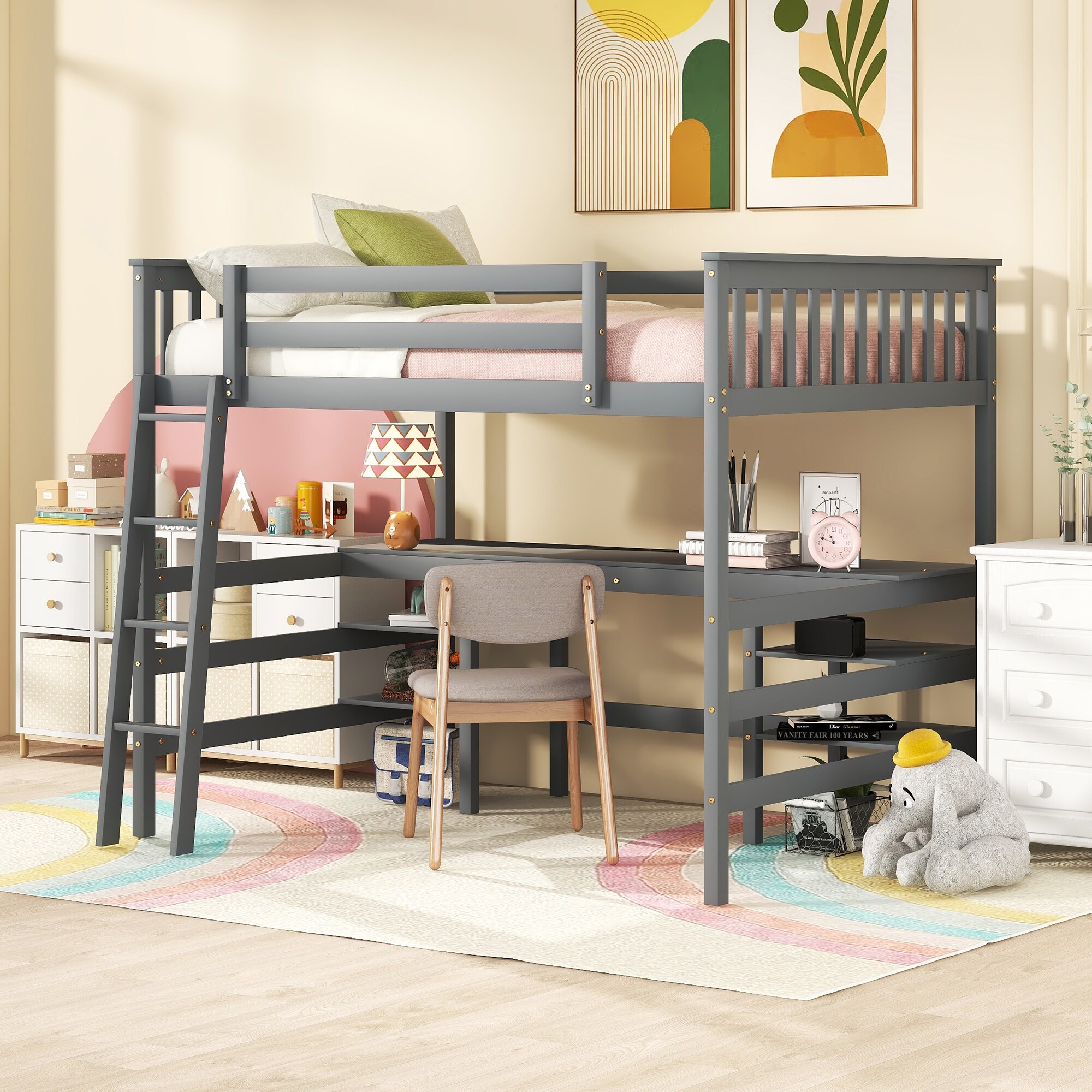Bed with Desk and Shelves Wooden Full Loft Bed