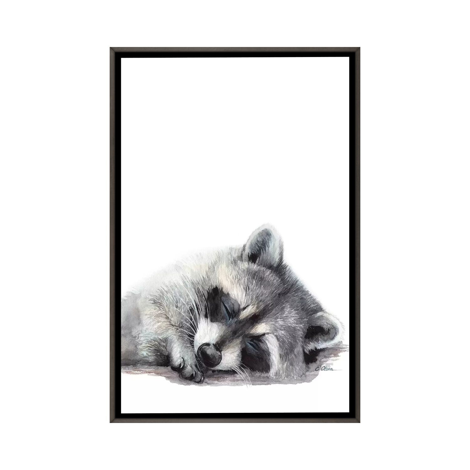 iCanvas "Woodland Sleeping Racc0on" by Watercolor Luv Framed