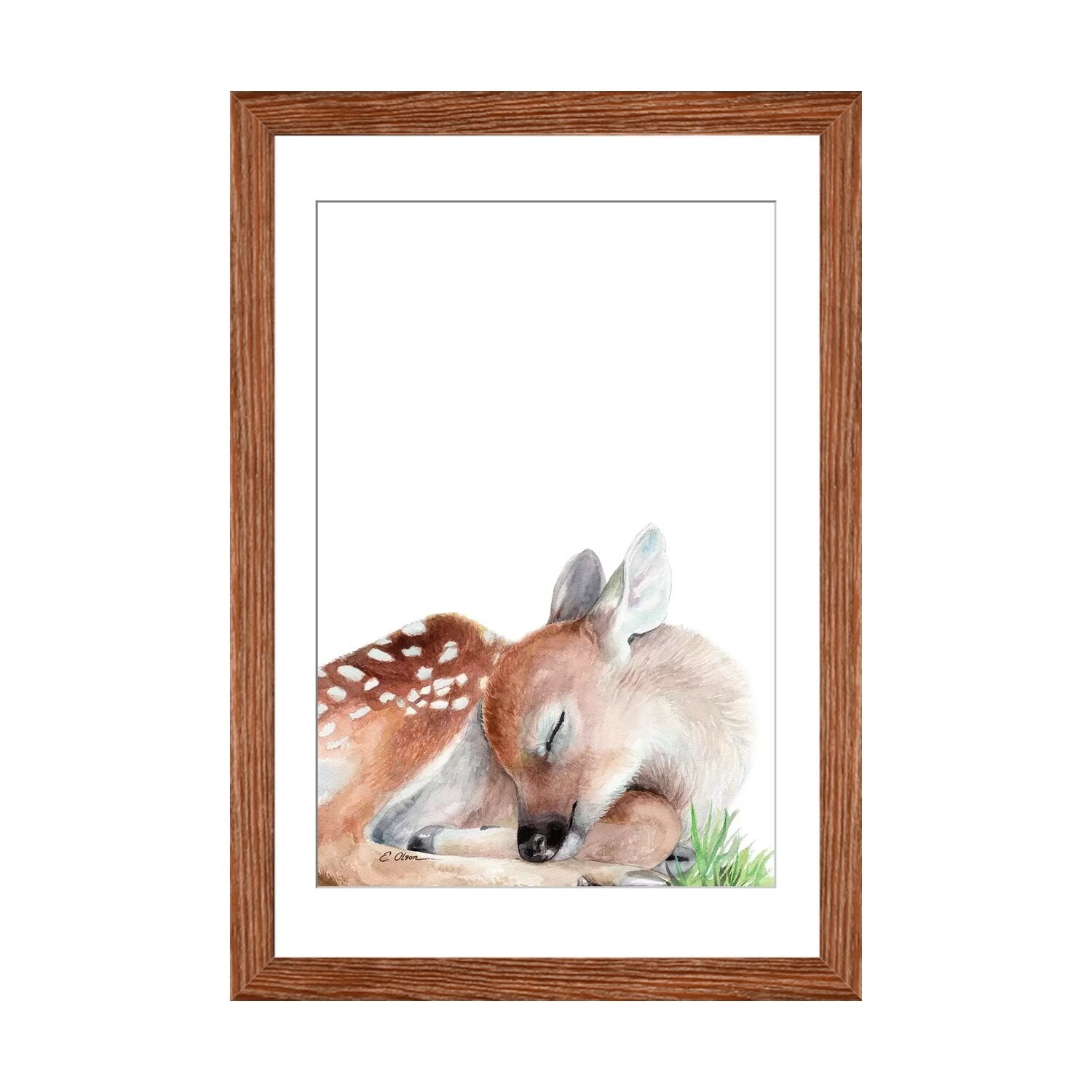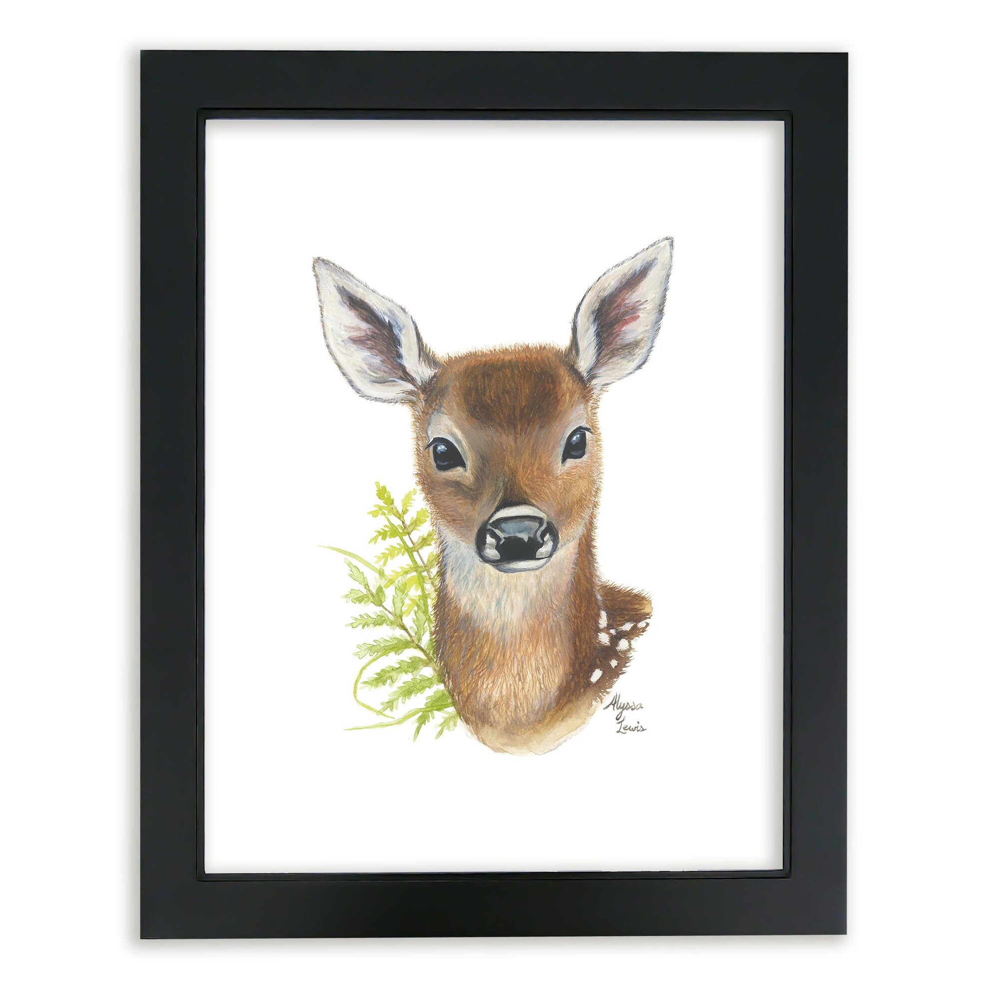 "Woodland Littles 2" - Deer - Individual Framed Print - Black - 16" x 20"