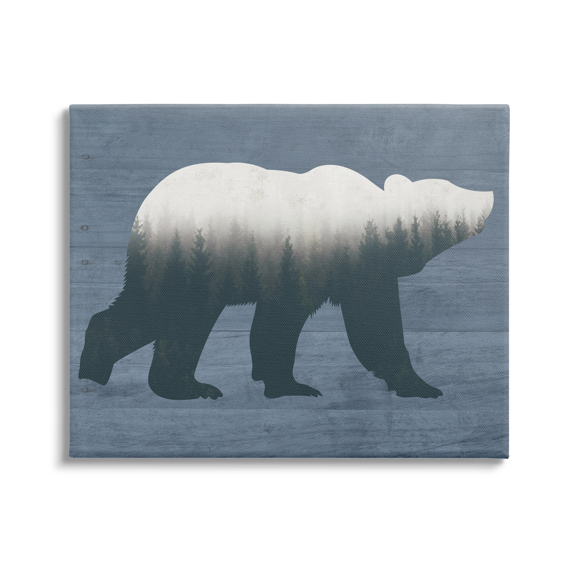 Stupell Rustic Woodland Trees Bear Silhouette Grainy Pattern Canvas Wall Art, Design by Lettered and Lined