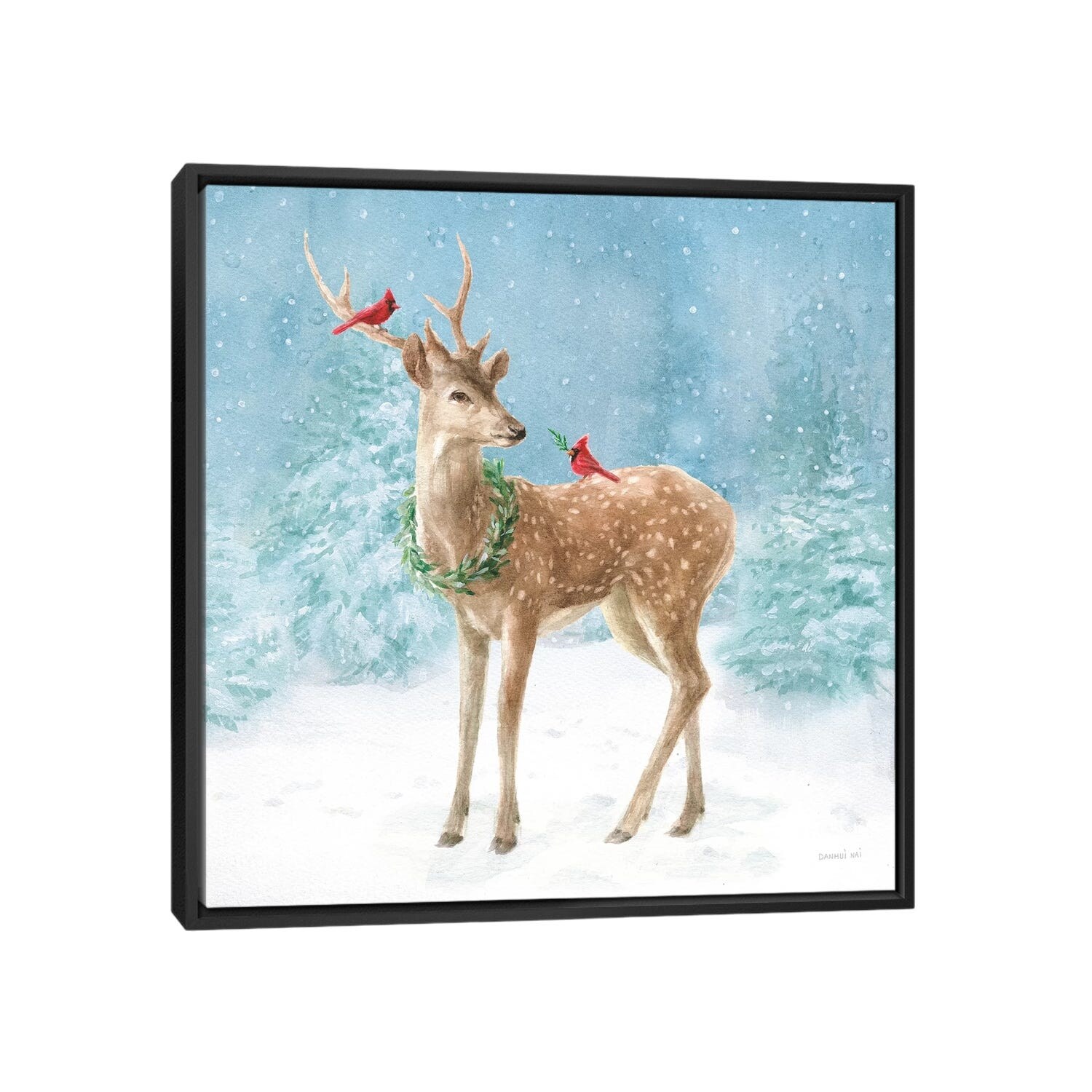 iCanvas "Woodland Holidays Wreath no Bird White" by Danhui Nai Framed
