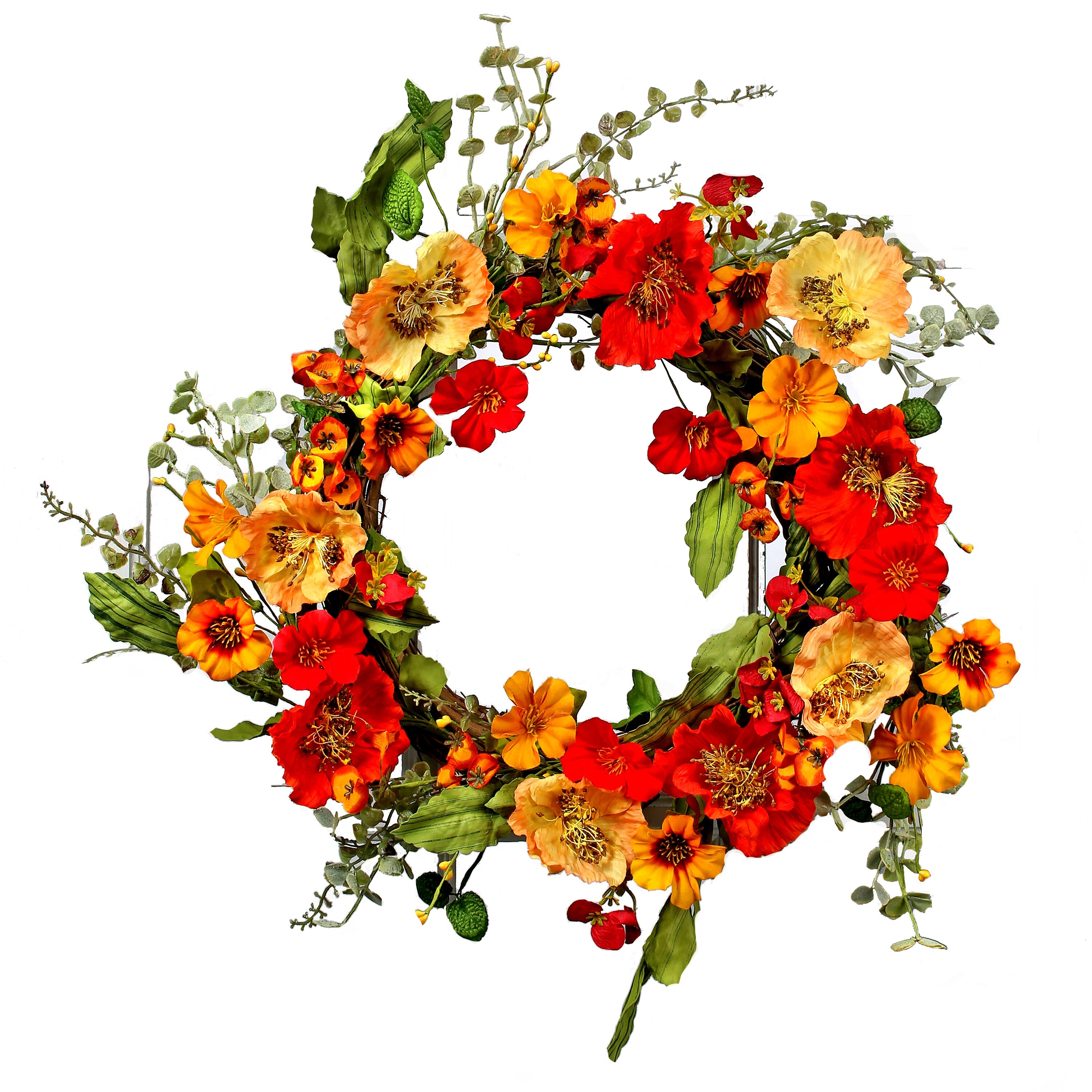 Mixed Poppy Wreath 20"