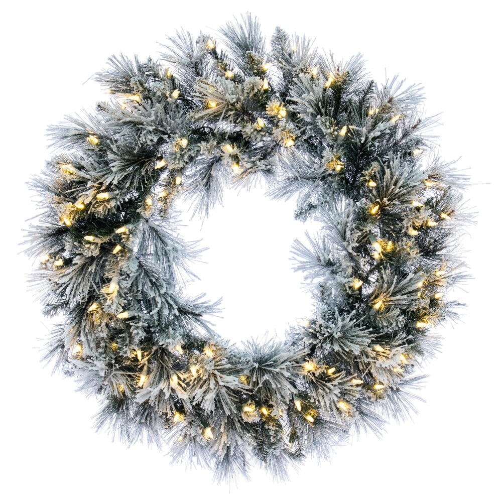 Vickerman 30" Flocked Jackson Pine Artificial Wreath with 100 Dura-Lit® Warm White Lights