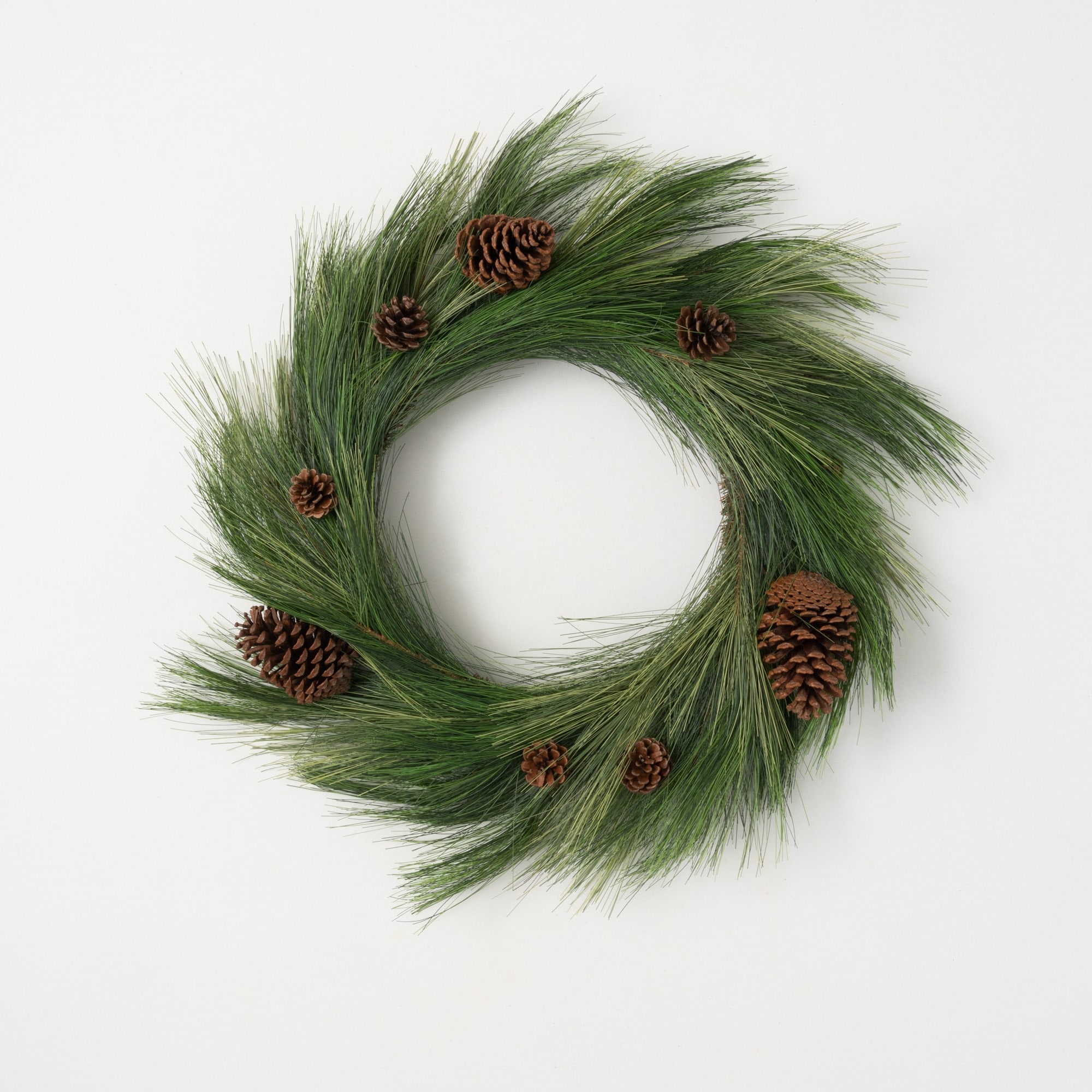 Artificial Woodland Long Pine Wreath Green 23"H