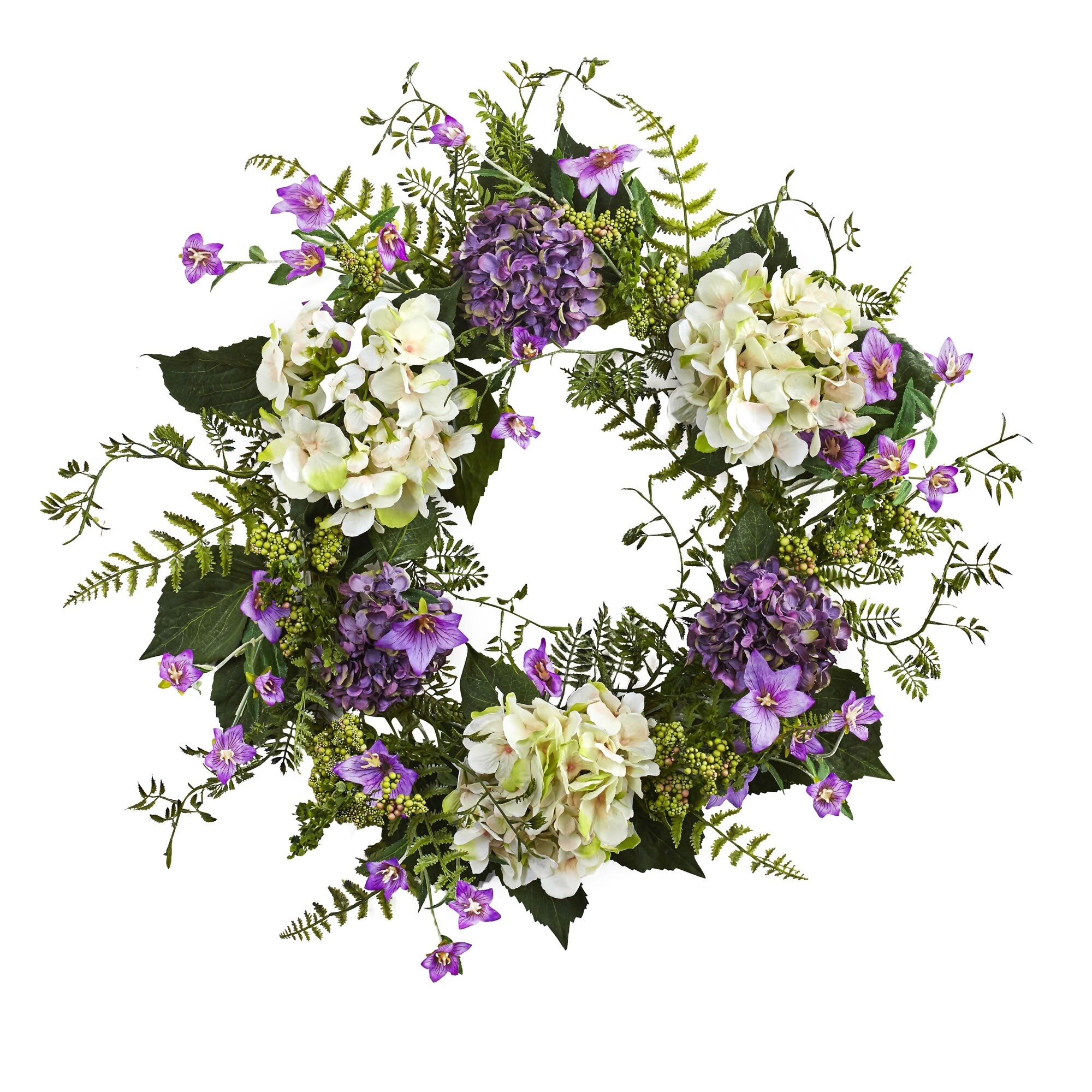 Purple Hydrangea Berry Spring Floral Wreath, 24-Inch, Unlit