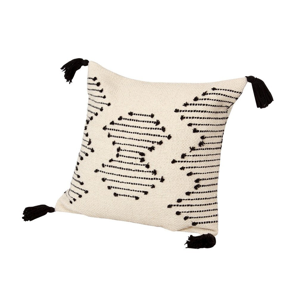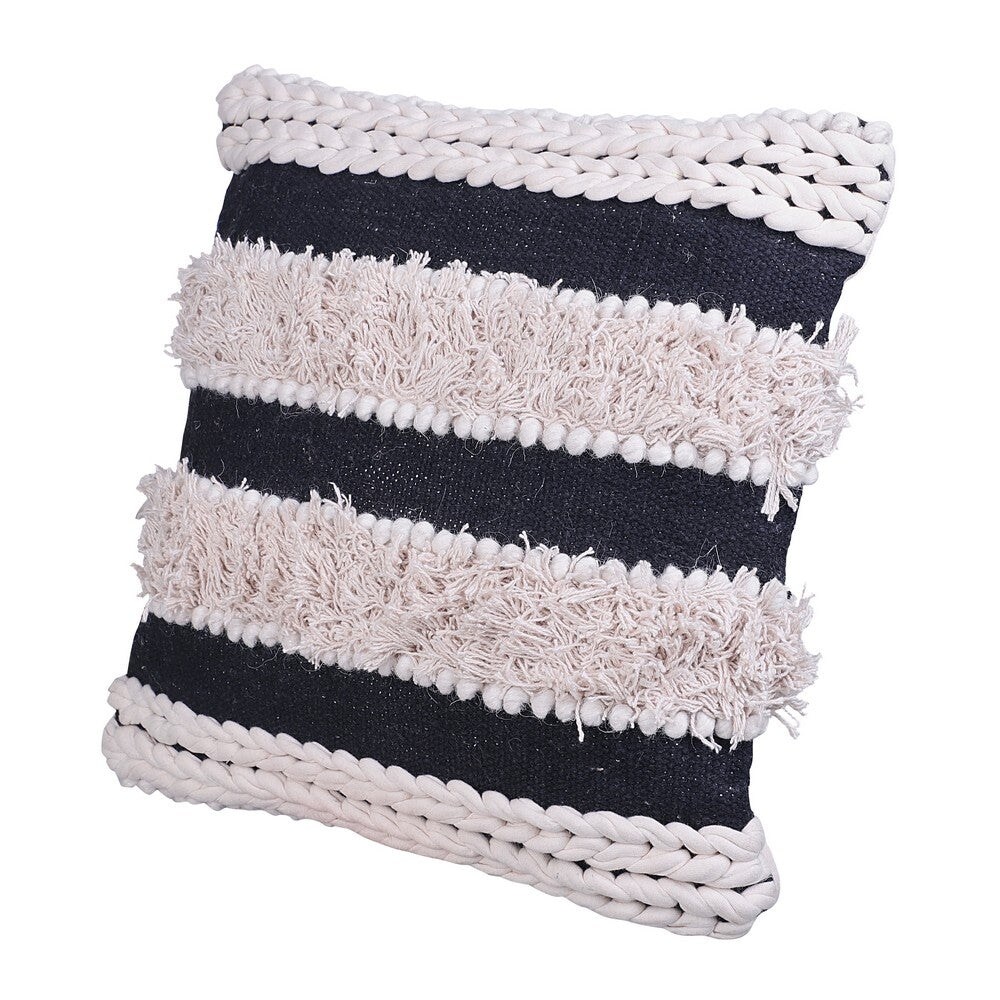 Adiv 18 x 18 Handcrafted Soft Shaggy Cotton Accent Throw Pillow - Black and White