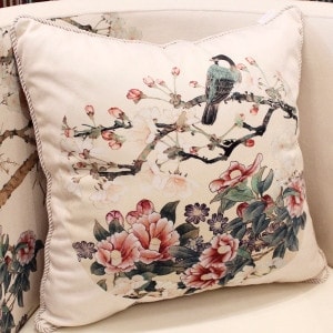 Throw Pillow With Jacquard Flowers Design, 18"x18"