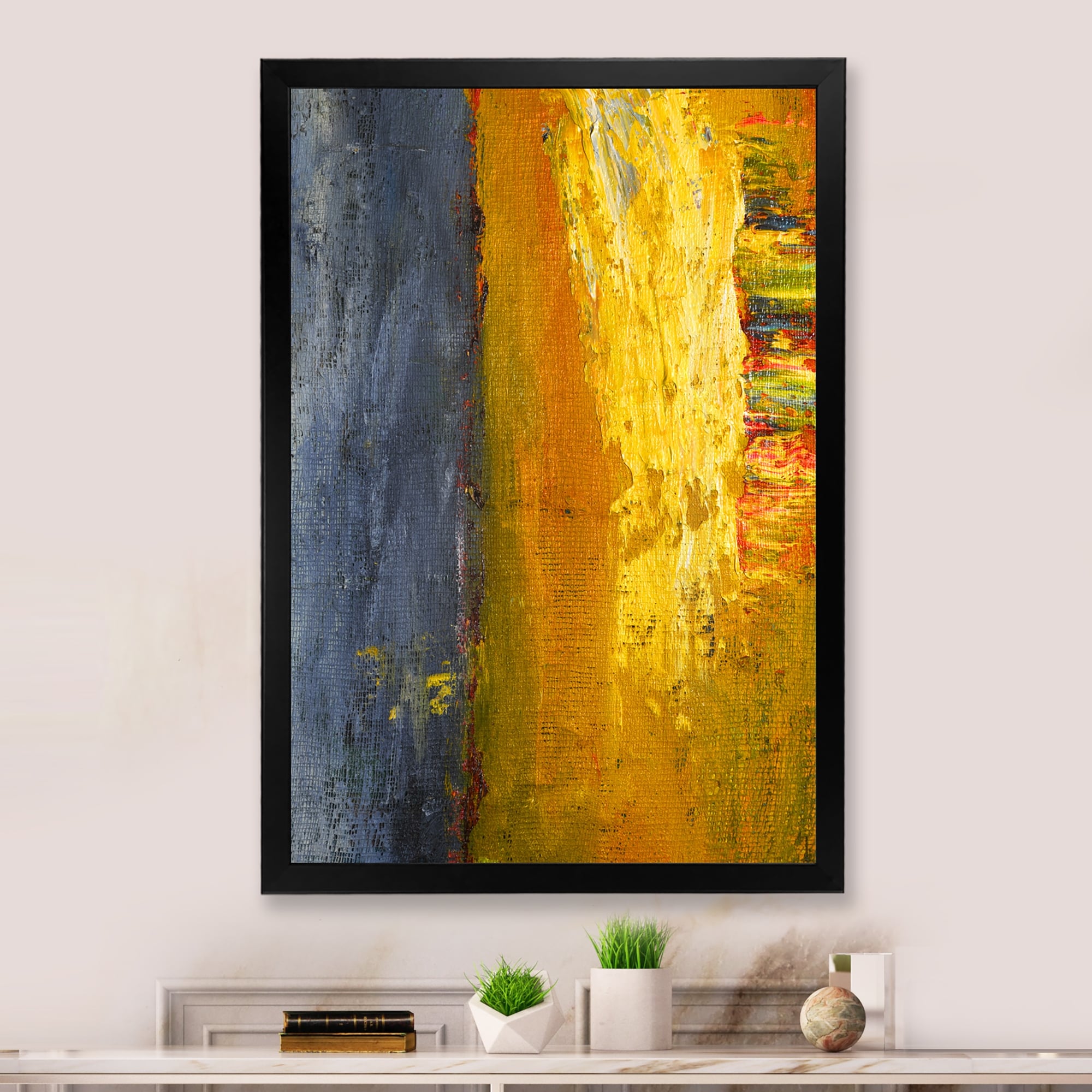 Designart "Grunge Grey And Yellow Stroke" Modern Framed artwork