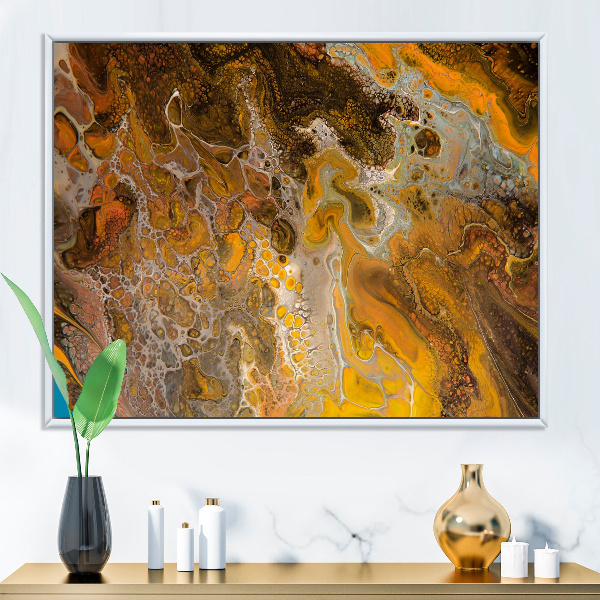 Designart "Brown And Yellow Marble Fluid Art" Abstract Framed Canvas artwork