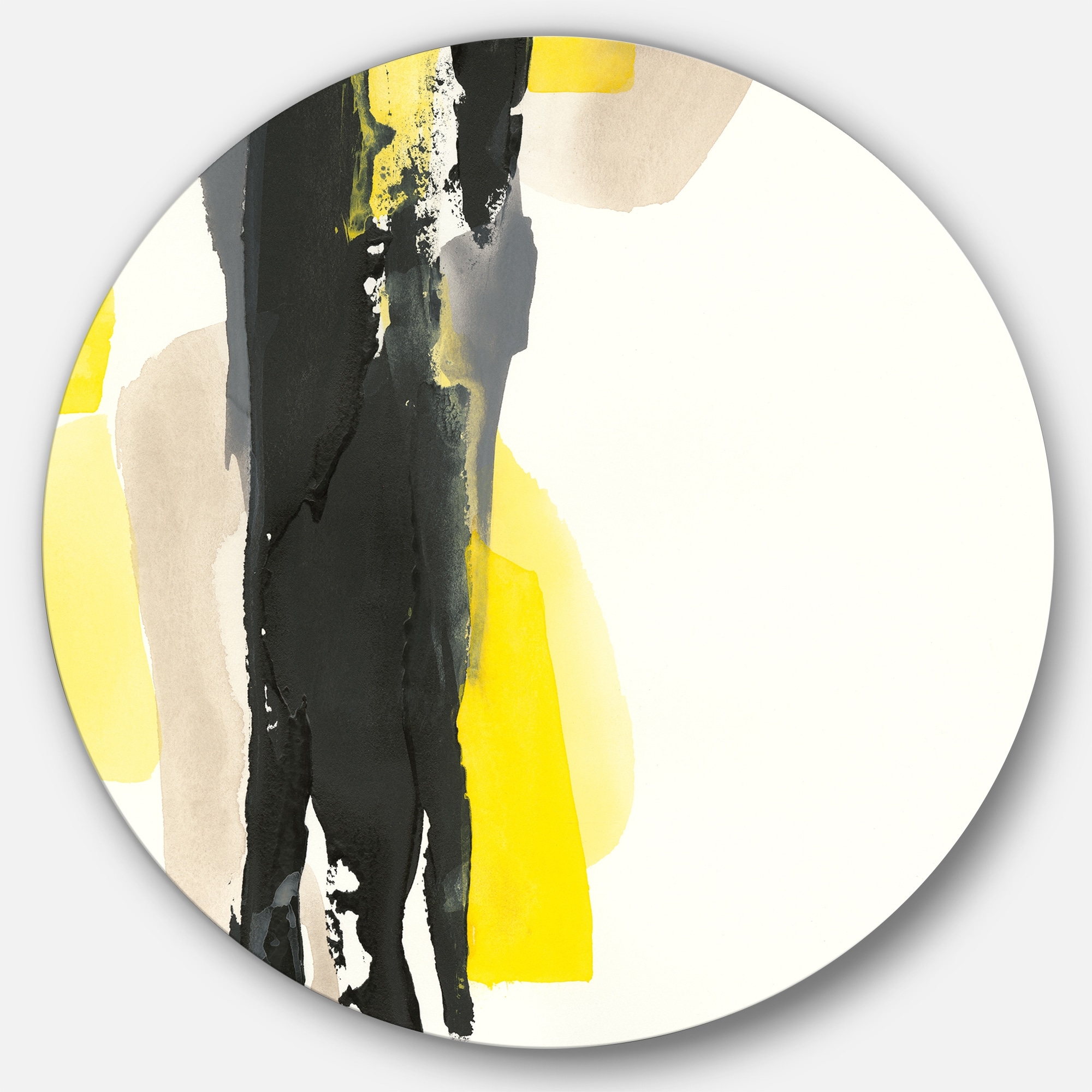 Designart 'Glam Black and Yellow II' Glam Metal Circle Wall Art