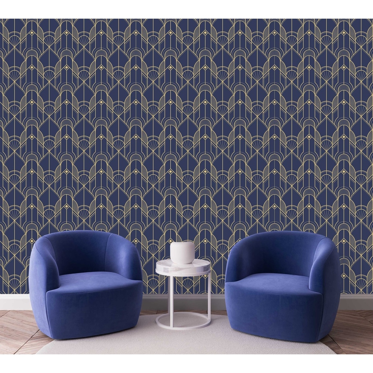 Dark Blue Wallpaper with Yellow Lines Peel and Stick and Prepasted
