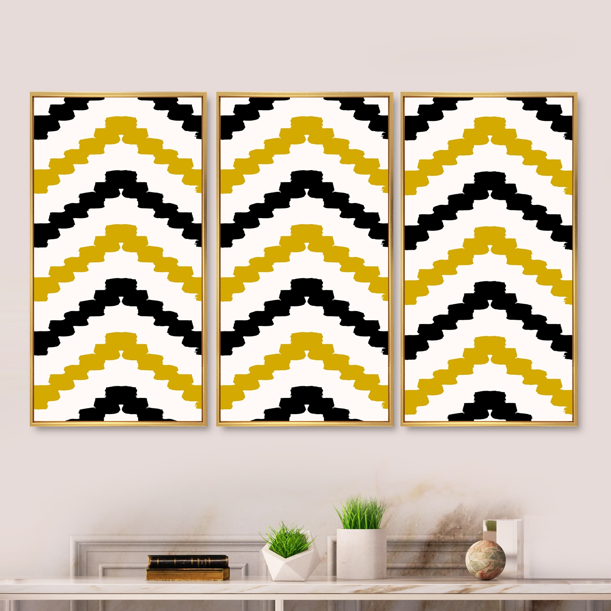 Designart "Black And Yellow Chevron" Modern Framed Wall Art Set of 3 - 4 Colors of Frames