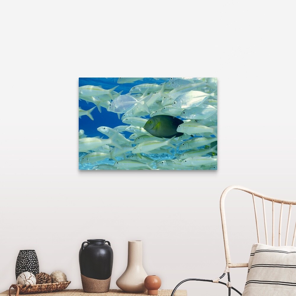 "Yellow surgeon fish with yellow stripe goldfish" Canvas Wall Art