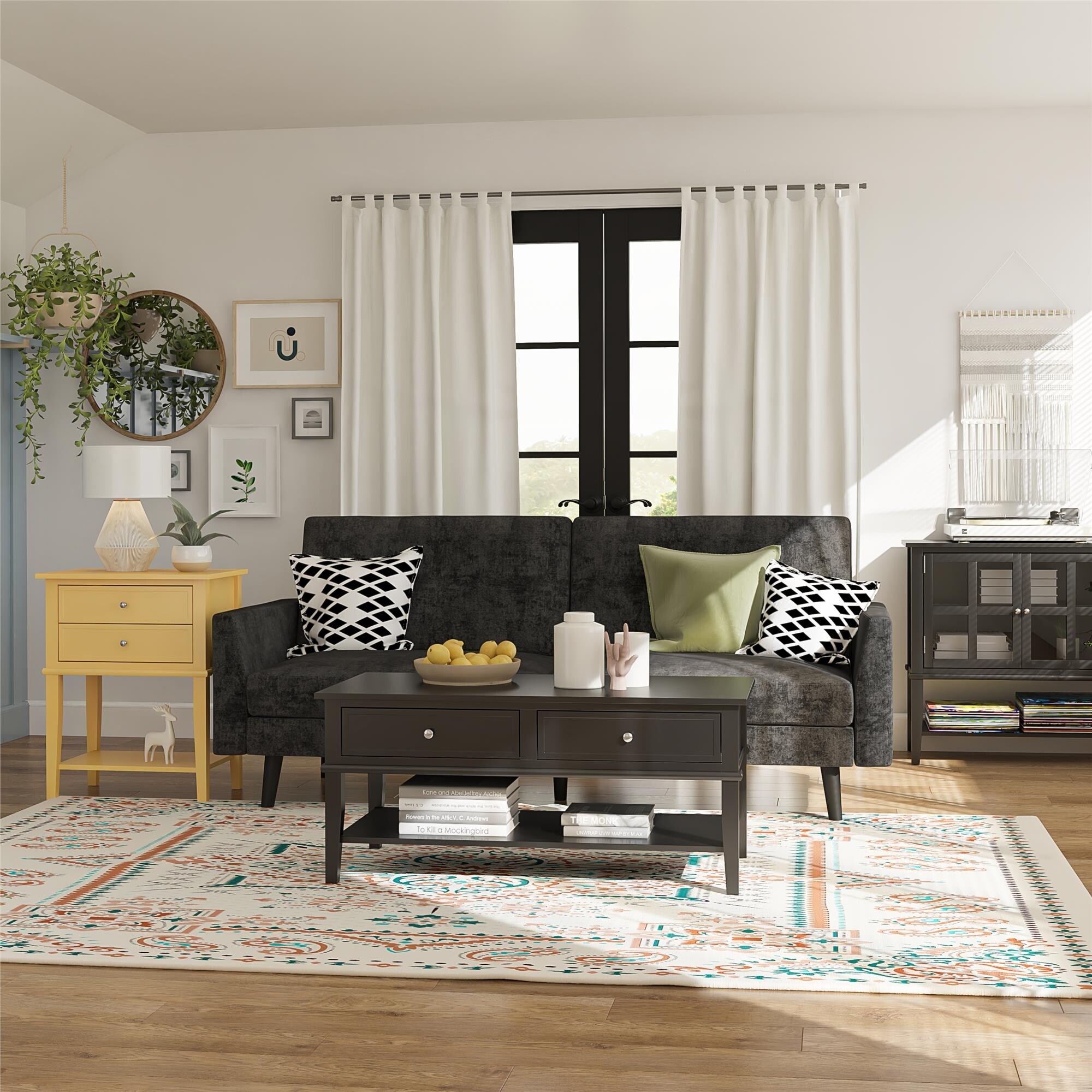 Eclectic Boho Accent Table with 2 Drawers, Yellow