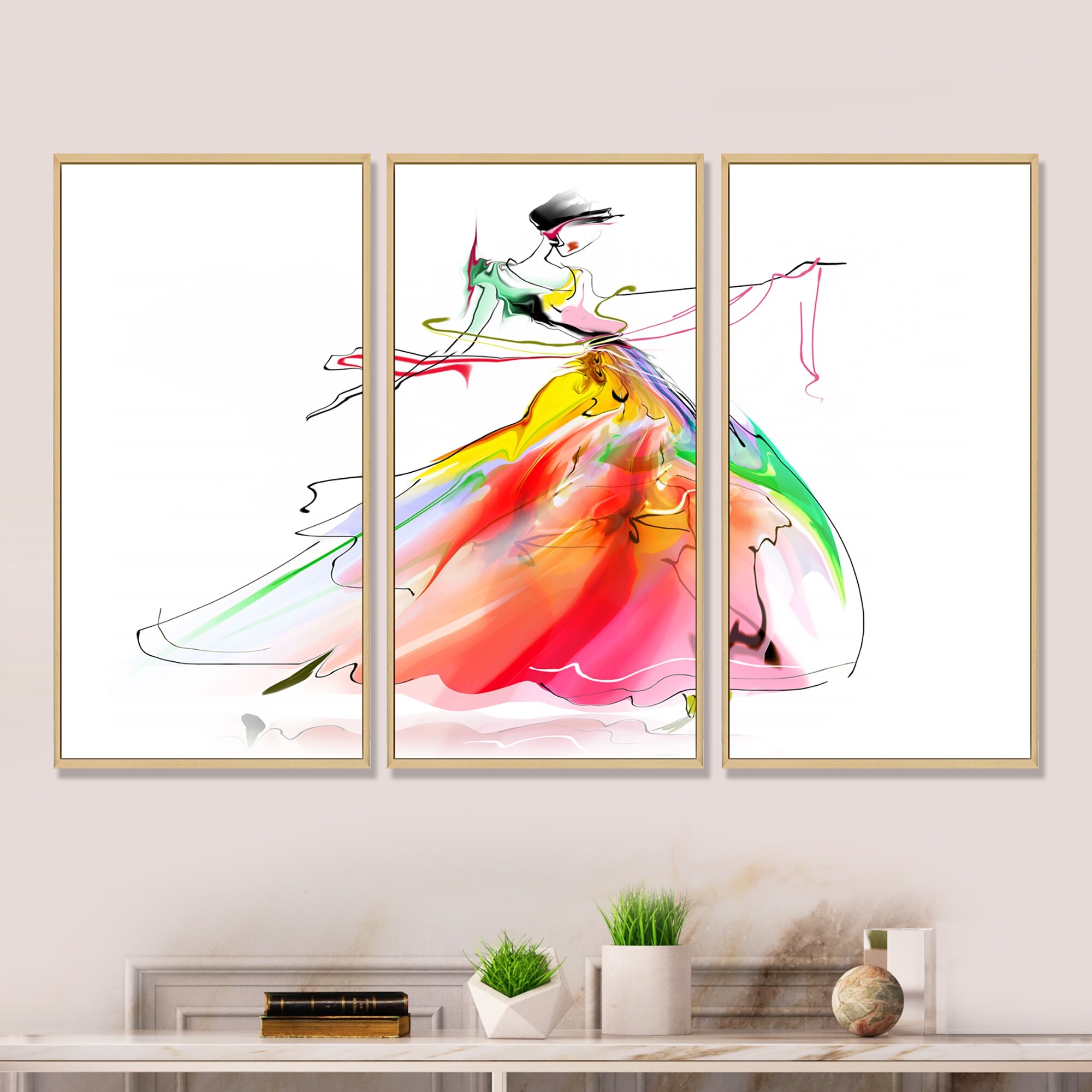 Designart "Young Woman Yellow Red" Portrait Framed Wall Decor Set of 3 - 4 Colors of Frames
