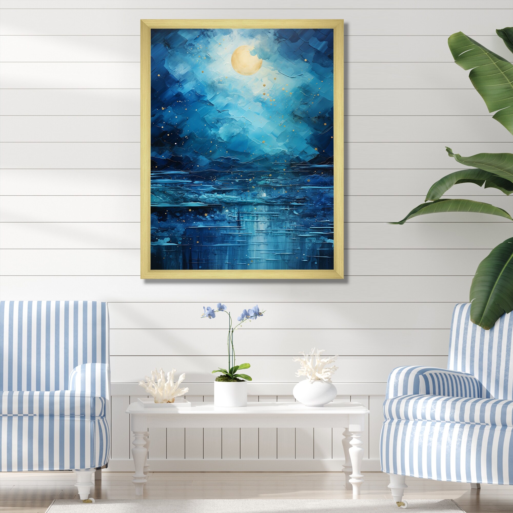 Designart "Teal Yellow Ocean Serenade Pastoral V" Ocean Framed Wall Art Living Room