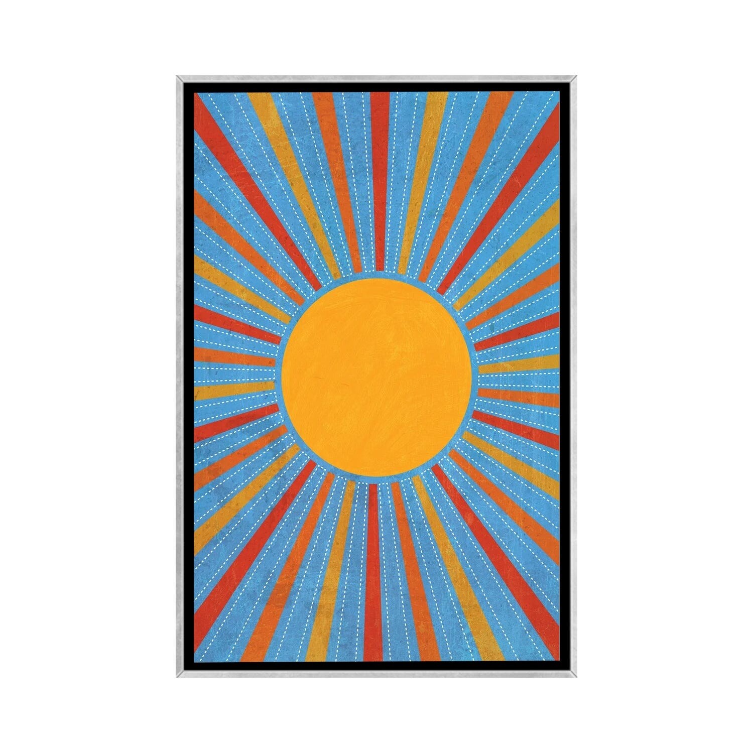 iCanvas "Sunburst Retro Yellow Sun" by EmcDesignLab Framed
