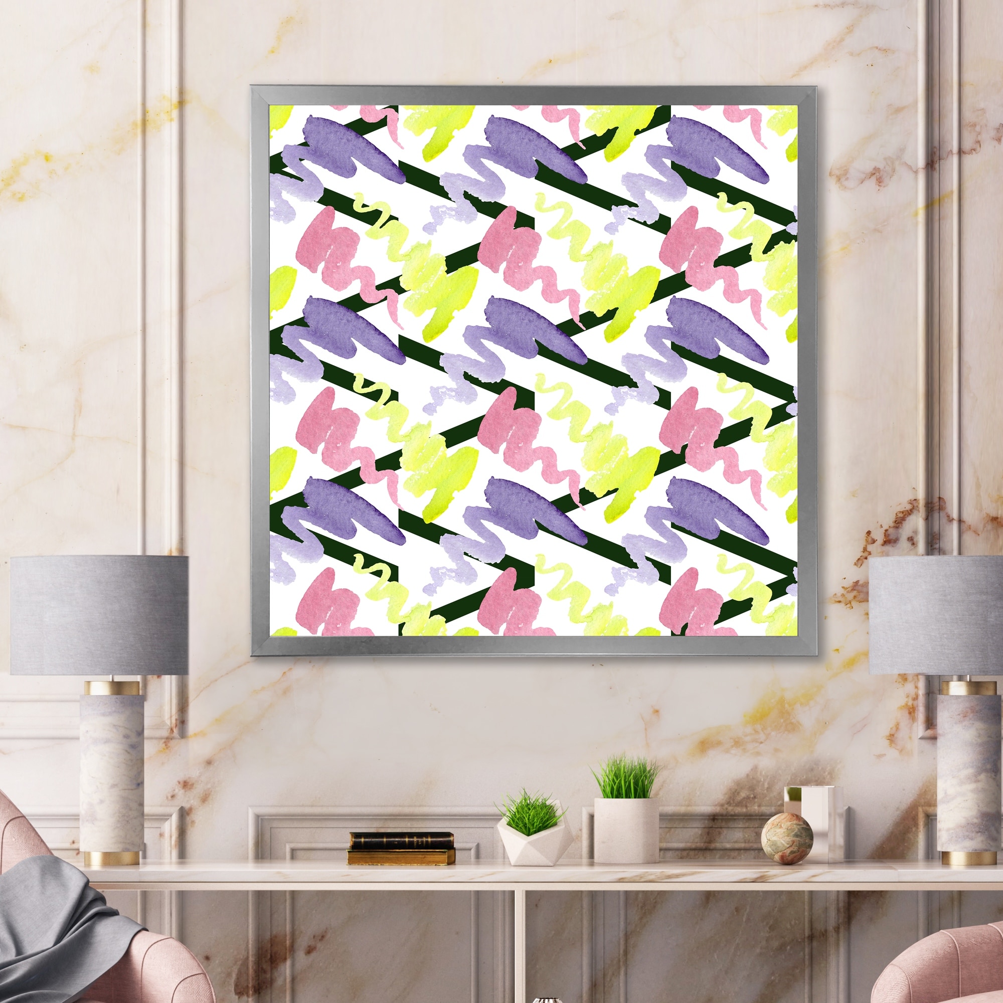 Designart "Yellow Purpule And Pink Abstract Zig Zag" Patterned Framed Art Print