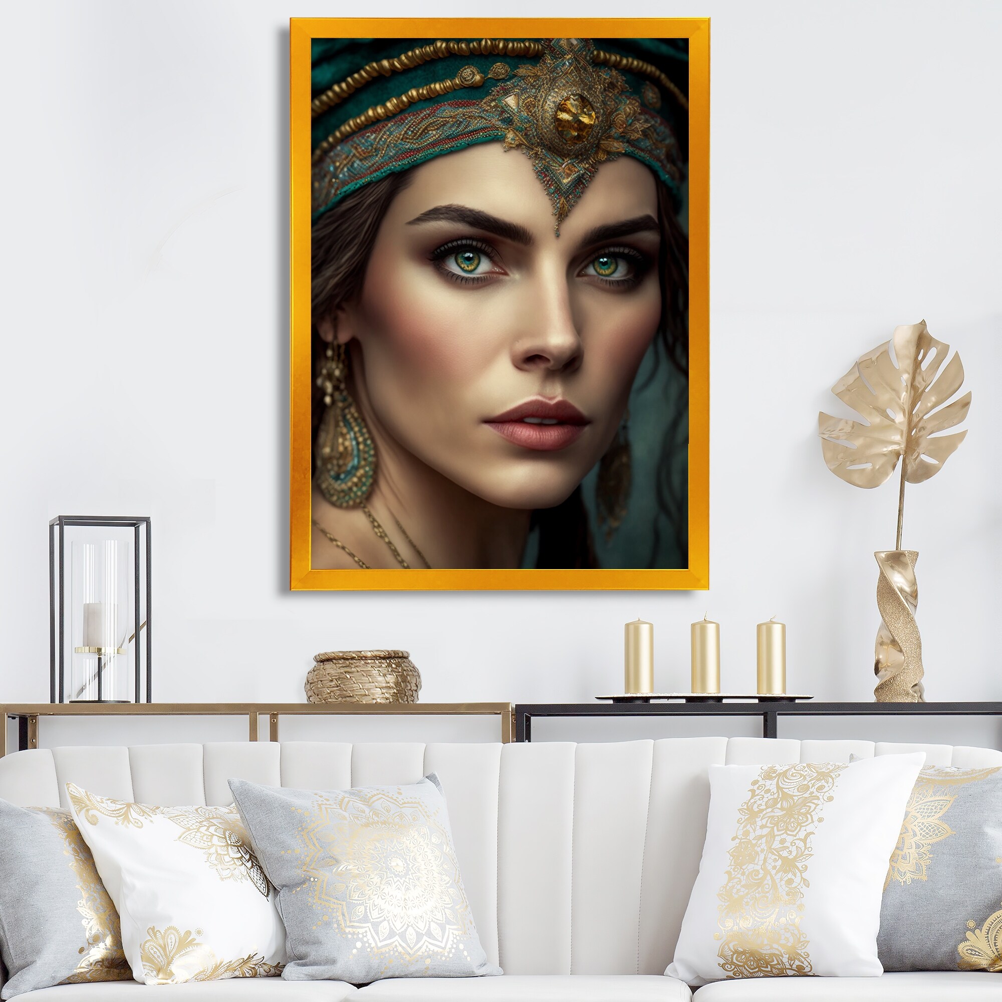 Designart "Bohemian Woman With Green Eyes I" Boho Woman Framed Wall Decor