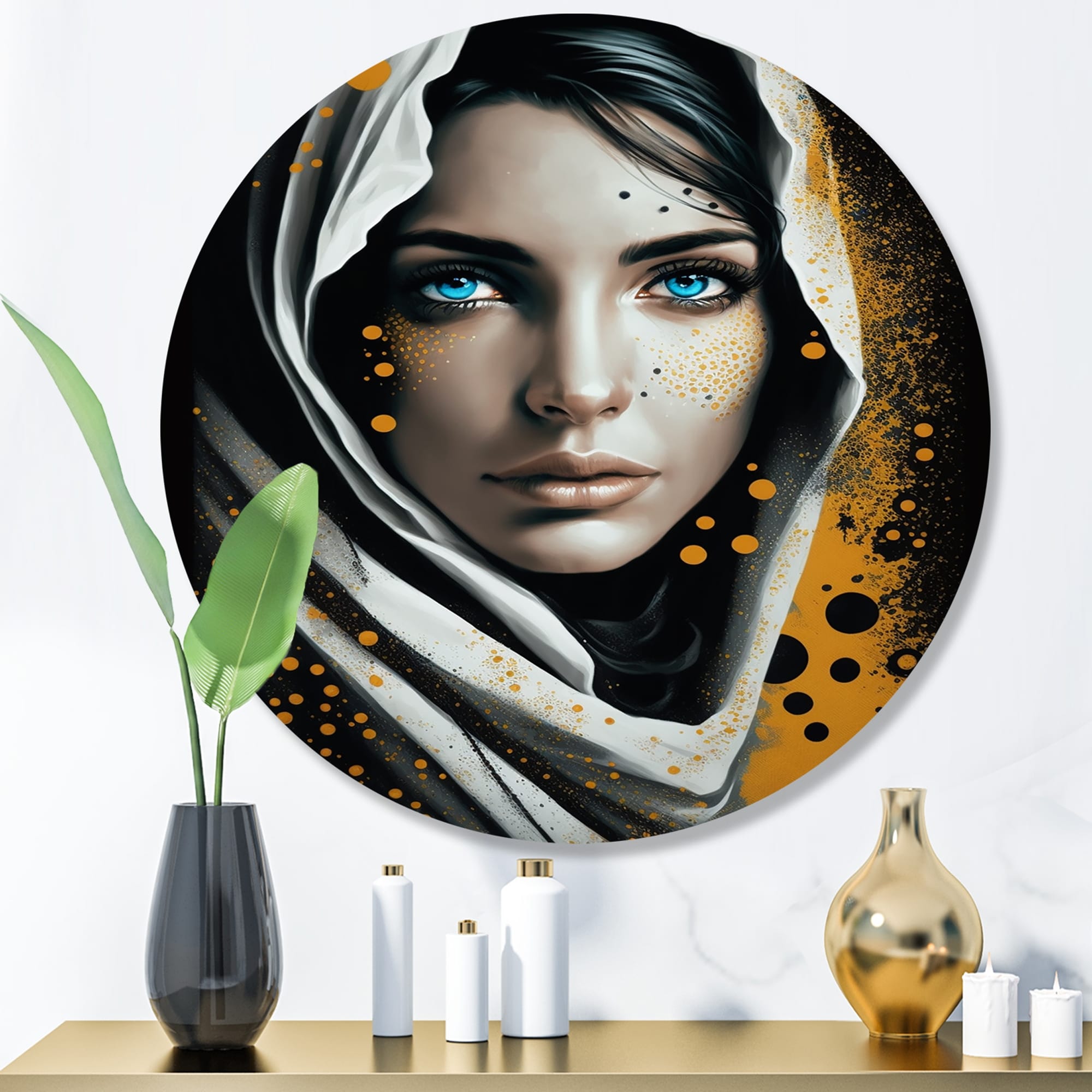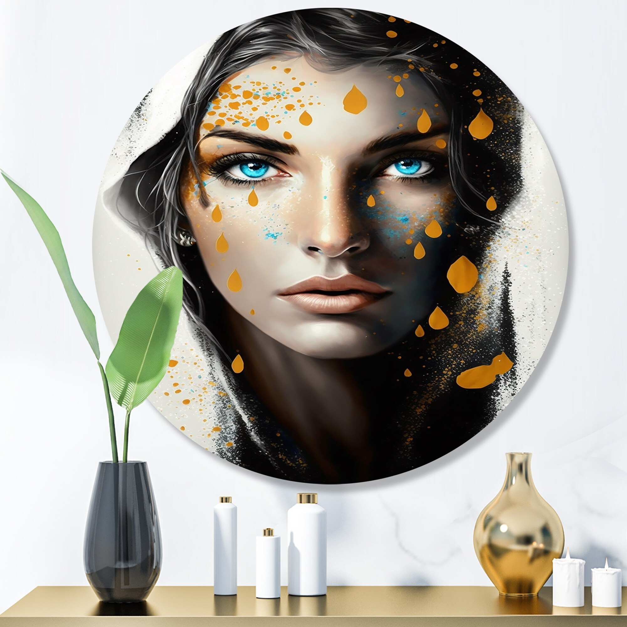 Designart "Fierce Blue Female Eyes II" Modern Woman Metal Round Wall Art