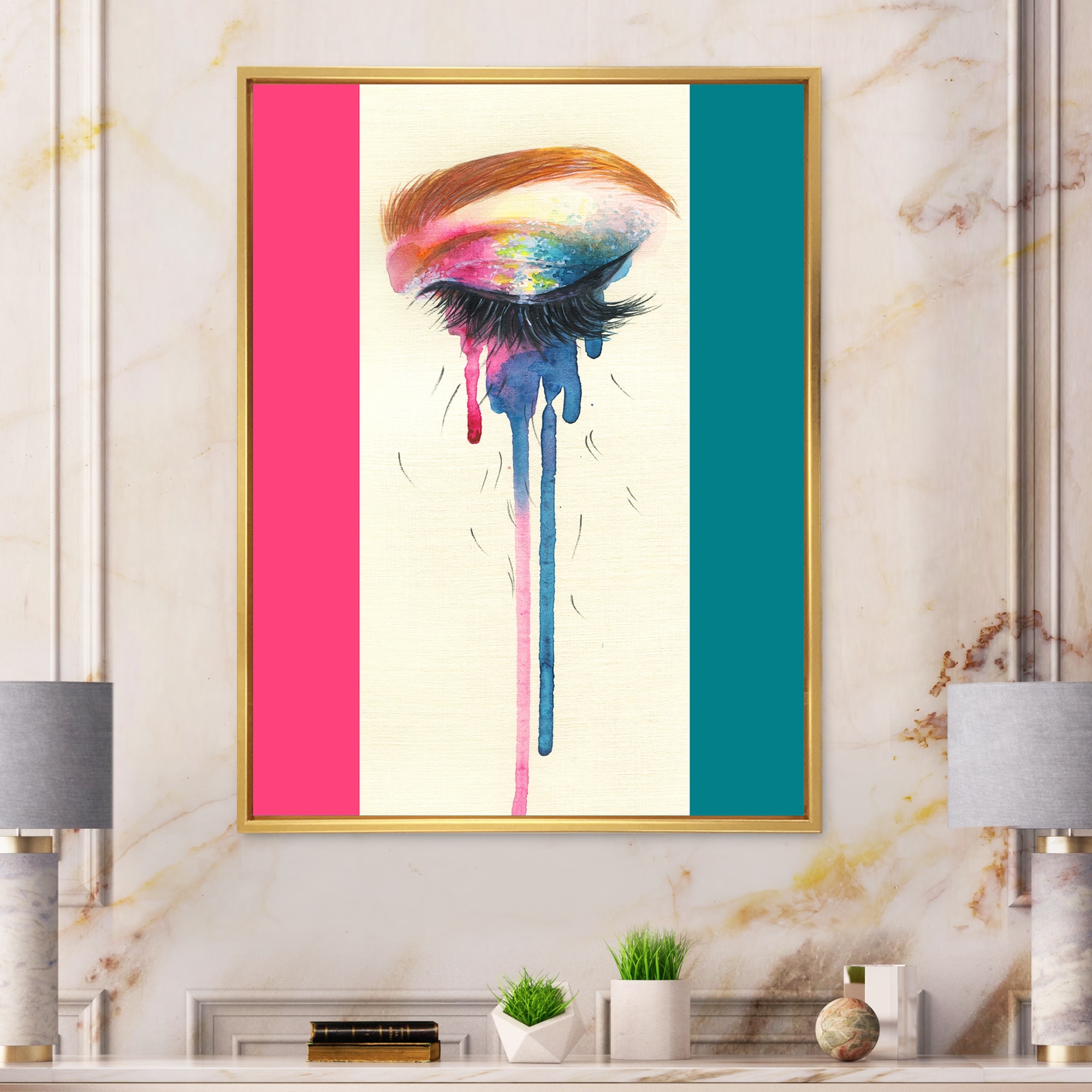 Designart "Stop To Cry Eyes With Vivid Make Up" Glam Framed Canvas Wall Art