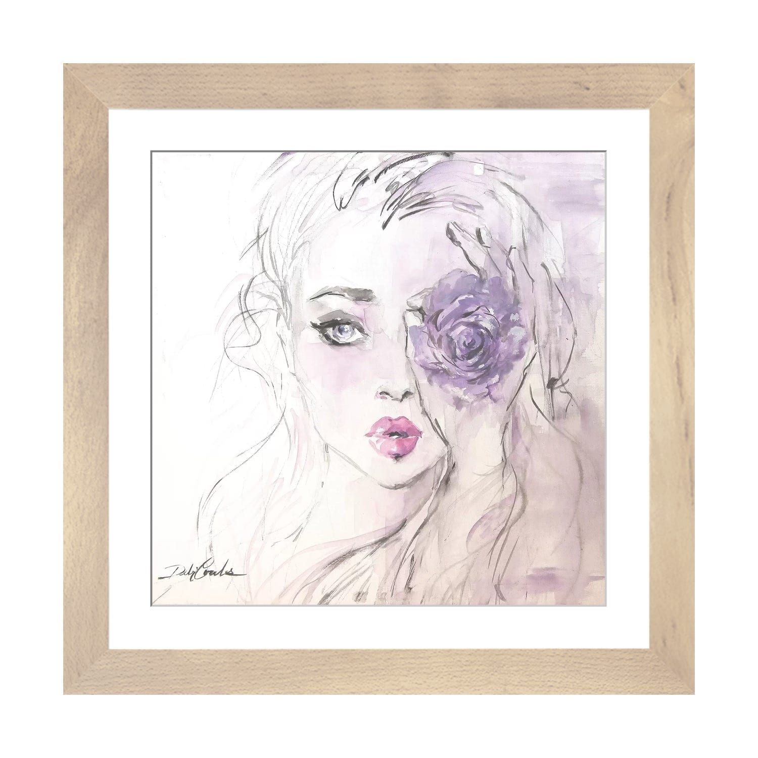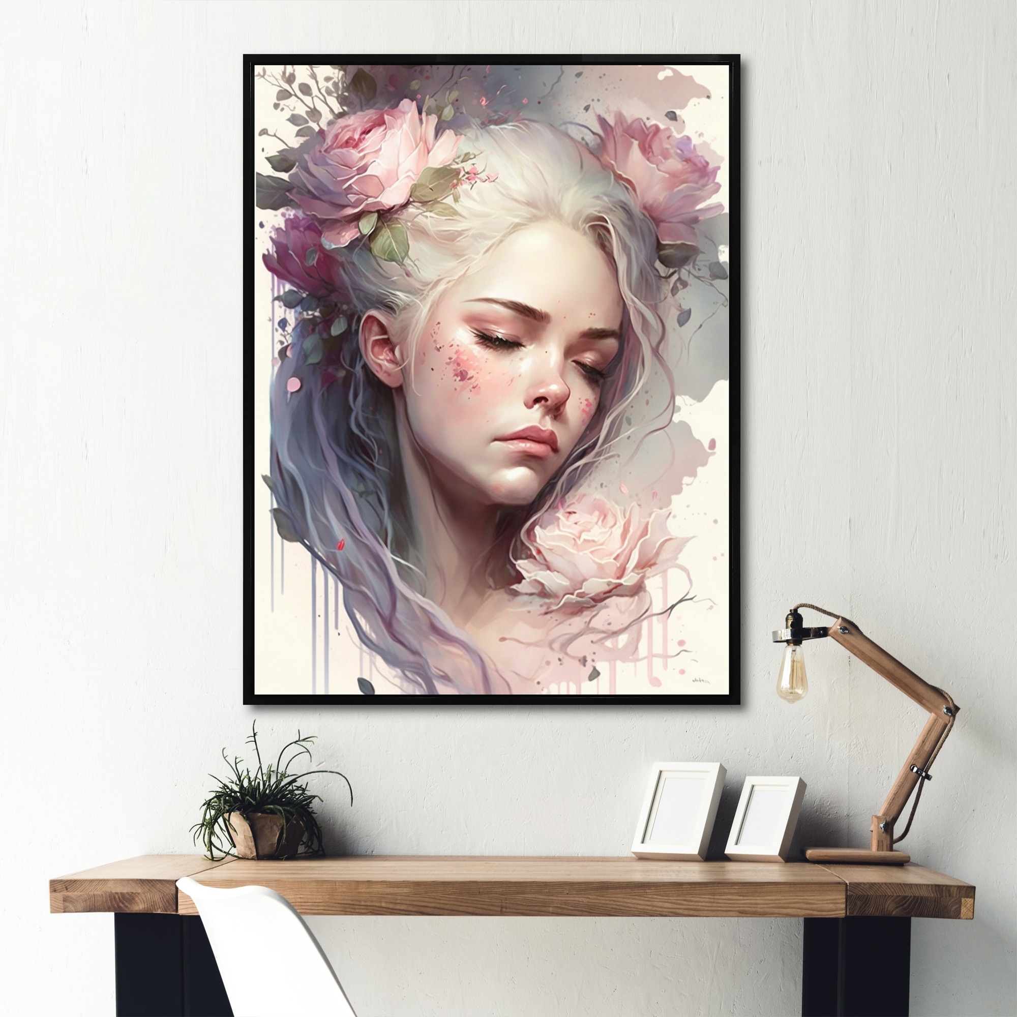 Designart "Woman With Closed Eyes And Flowers in Her Hair" Woman Floral Framed Canvas Art Print