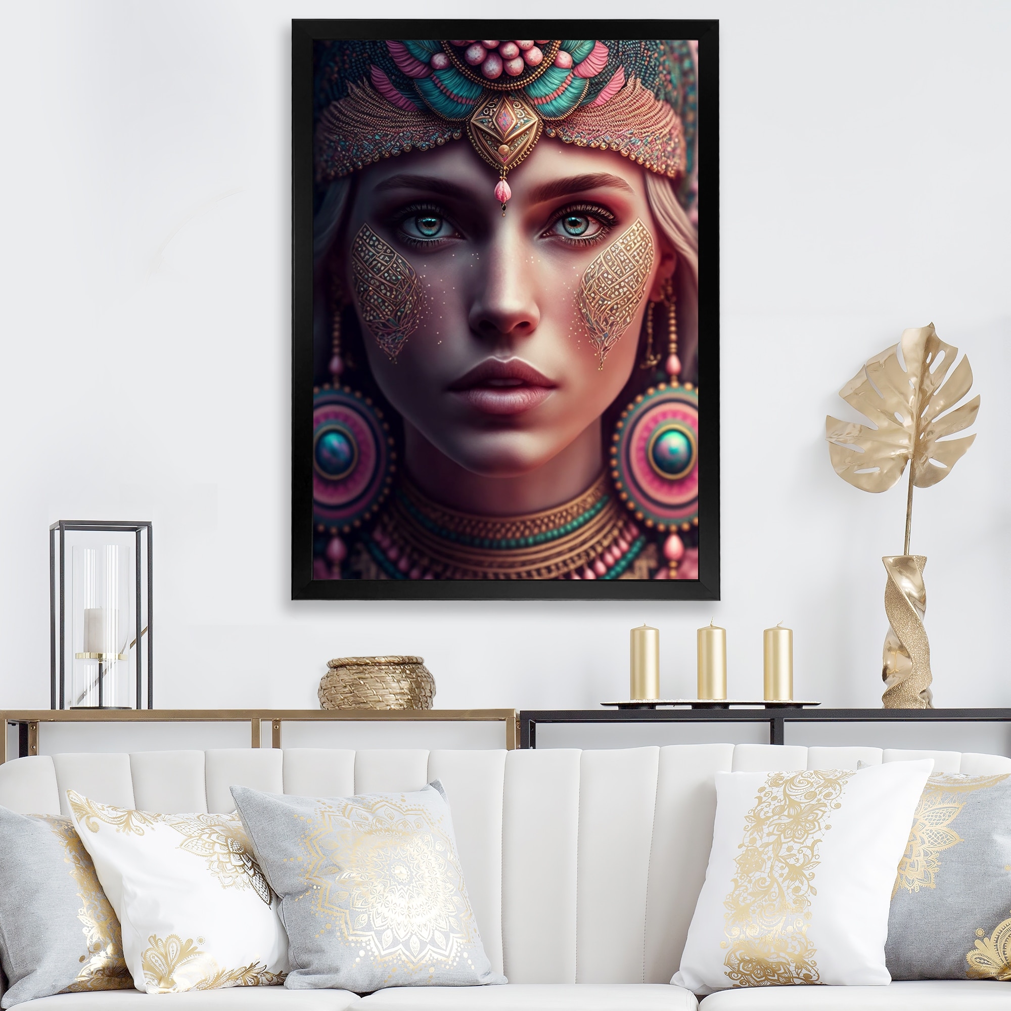 Designart "Bohemian Woman With Blue Eyes VIII" Boho Woman Framed Canvas Wall Art