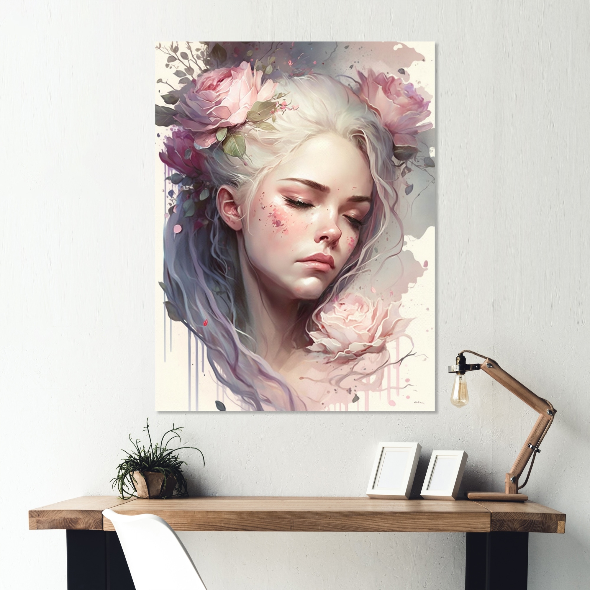 Designart 'Woman With Closed Eyes And Flowers in Her Hair' Woman Floral Canvas Wall Art