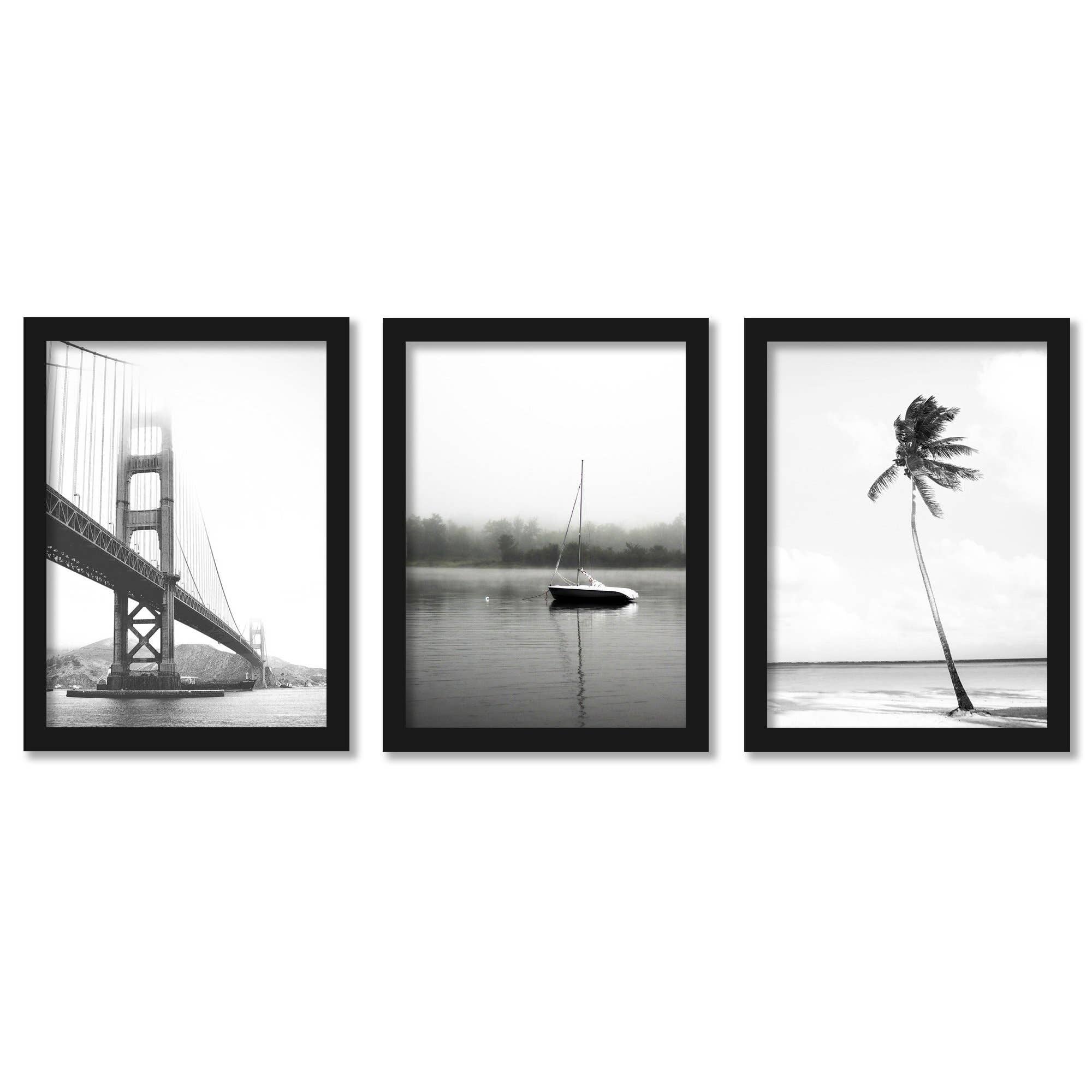 Cali Monochrome Tanya Shumkina Coastal - 3 Piece Framed Gallery Art Set
