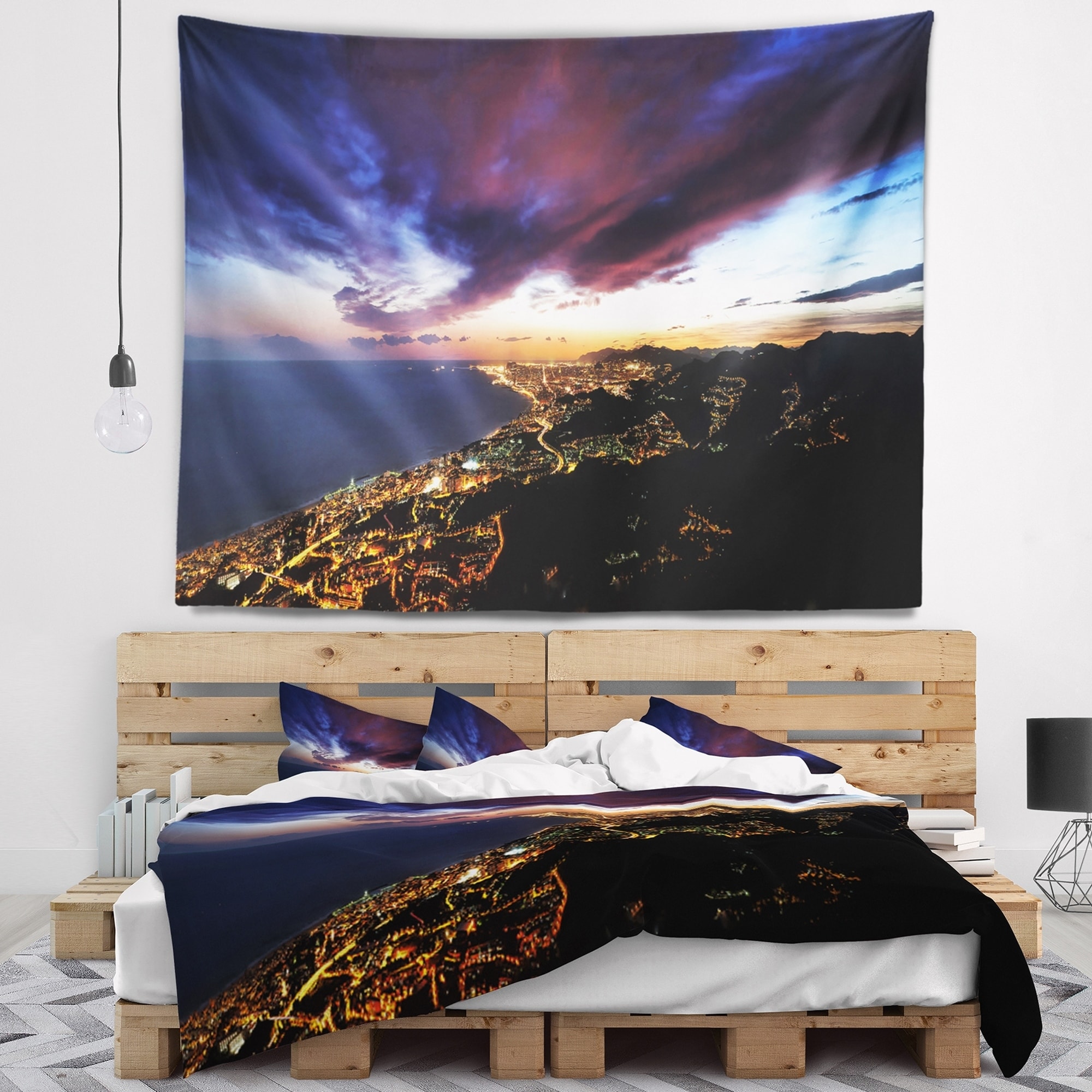 Designart 'Barcelona Skyline Panorama' Cityscape Wall Tapestry