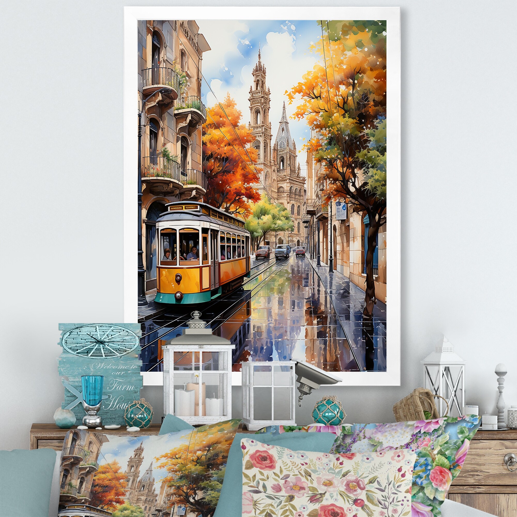 Designart "Spain Colorful Streets of Barcelona" Spain Framed Wall Art Living Room