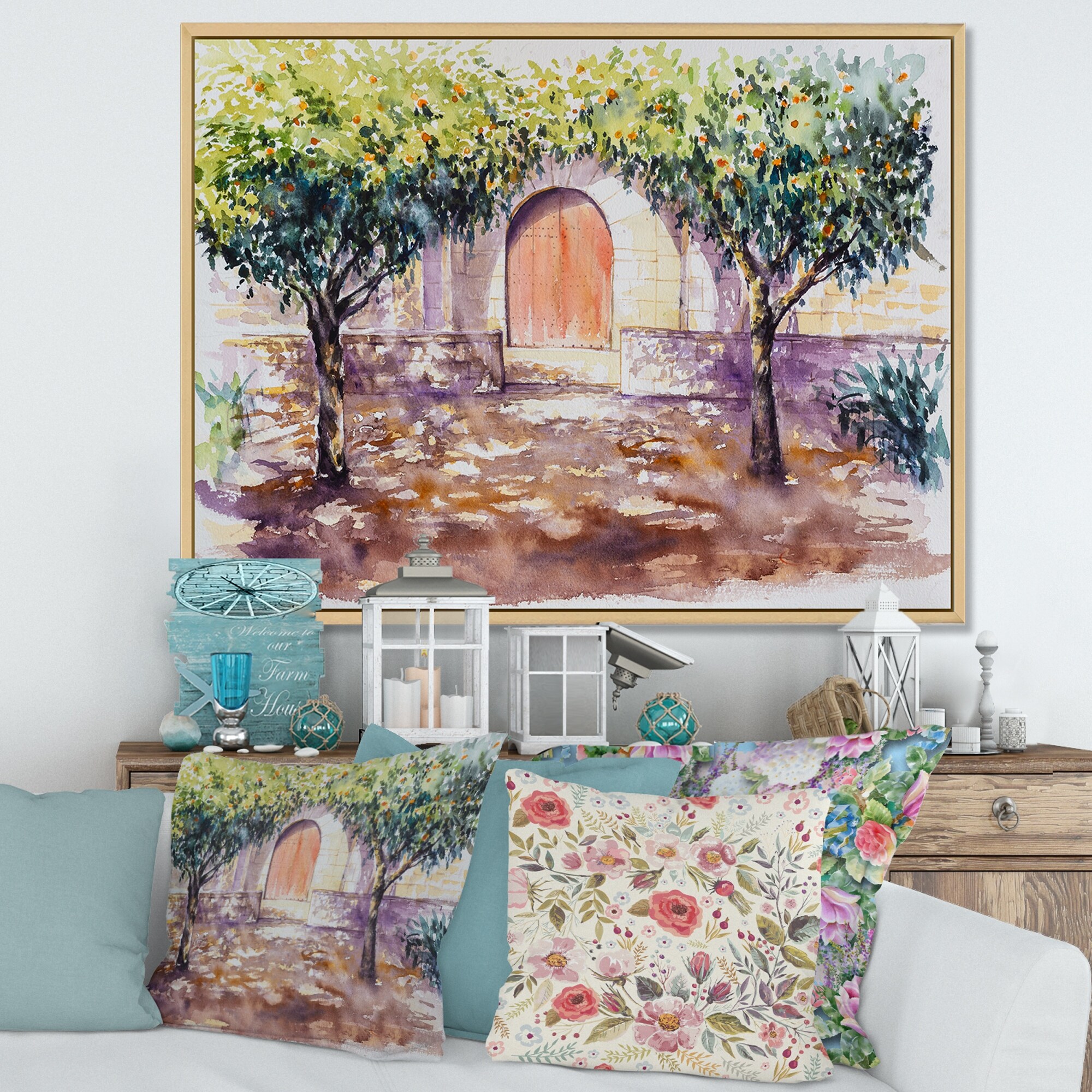 Designart "Backyard Library in Barcelona With Orange Trees" Traditional Framed Canvas Wall Art Print