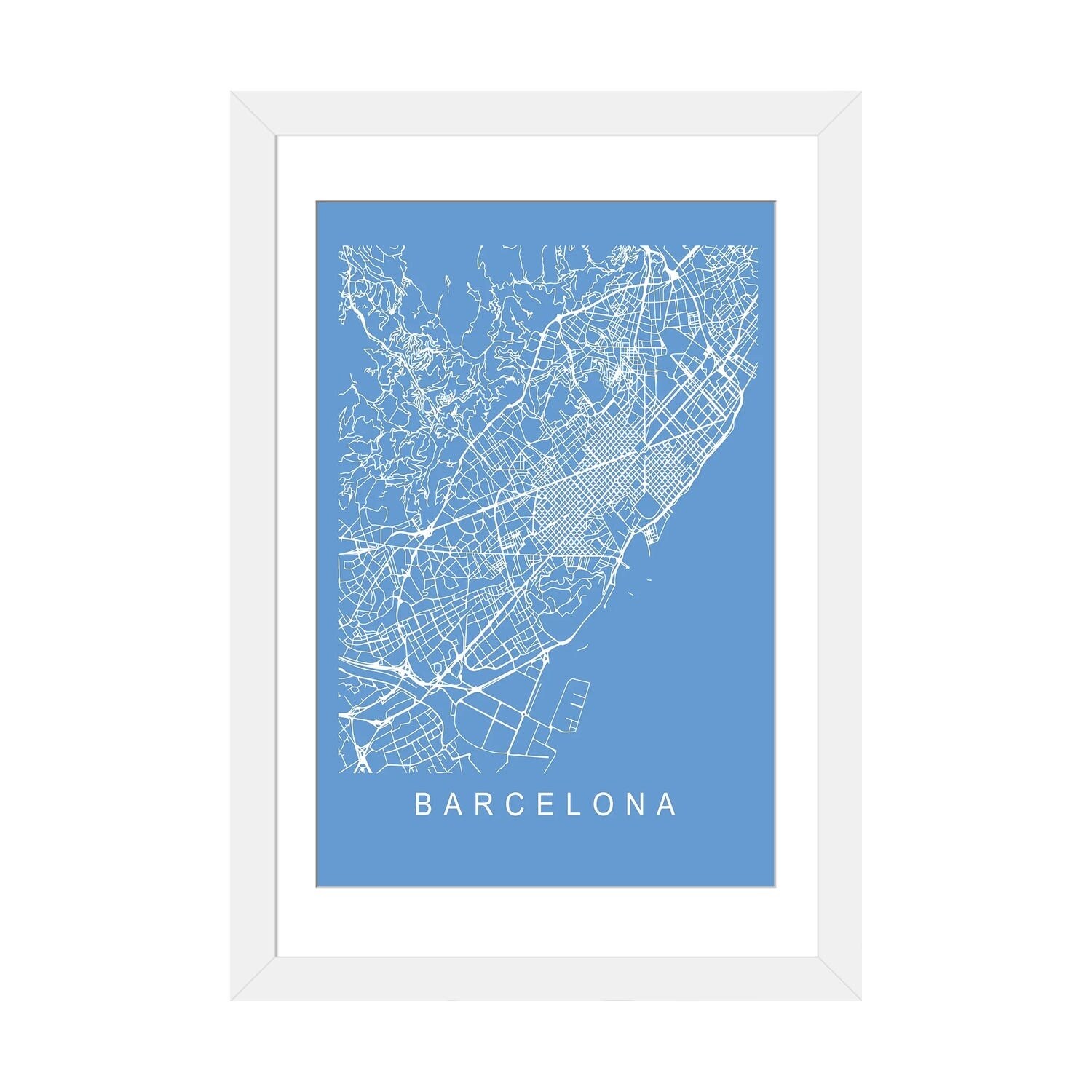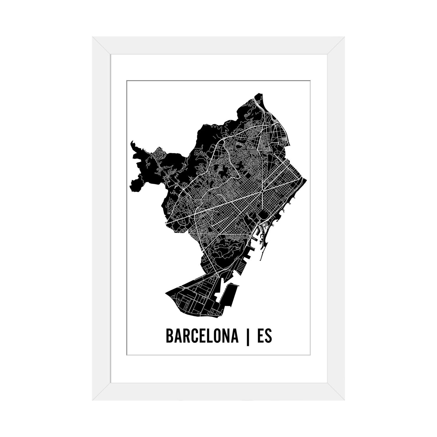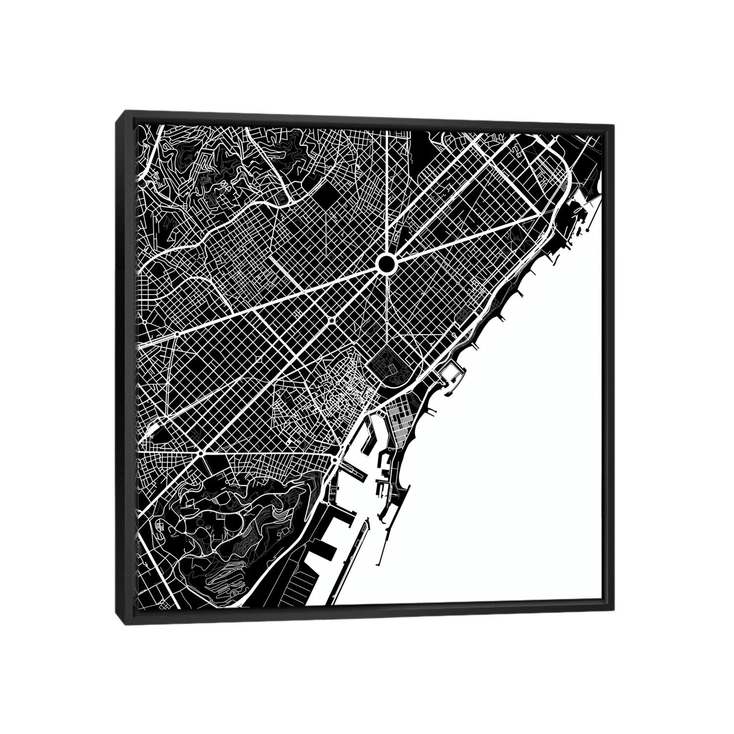 iCanvas "Barcelona Urban Map (White)" by Urbanmap Framed Canvas Print