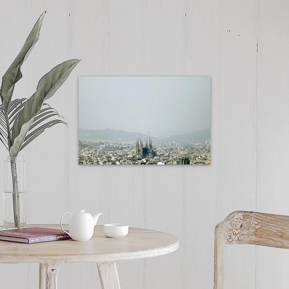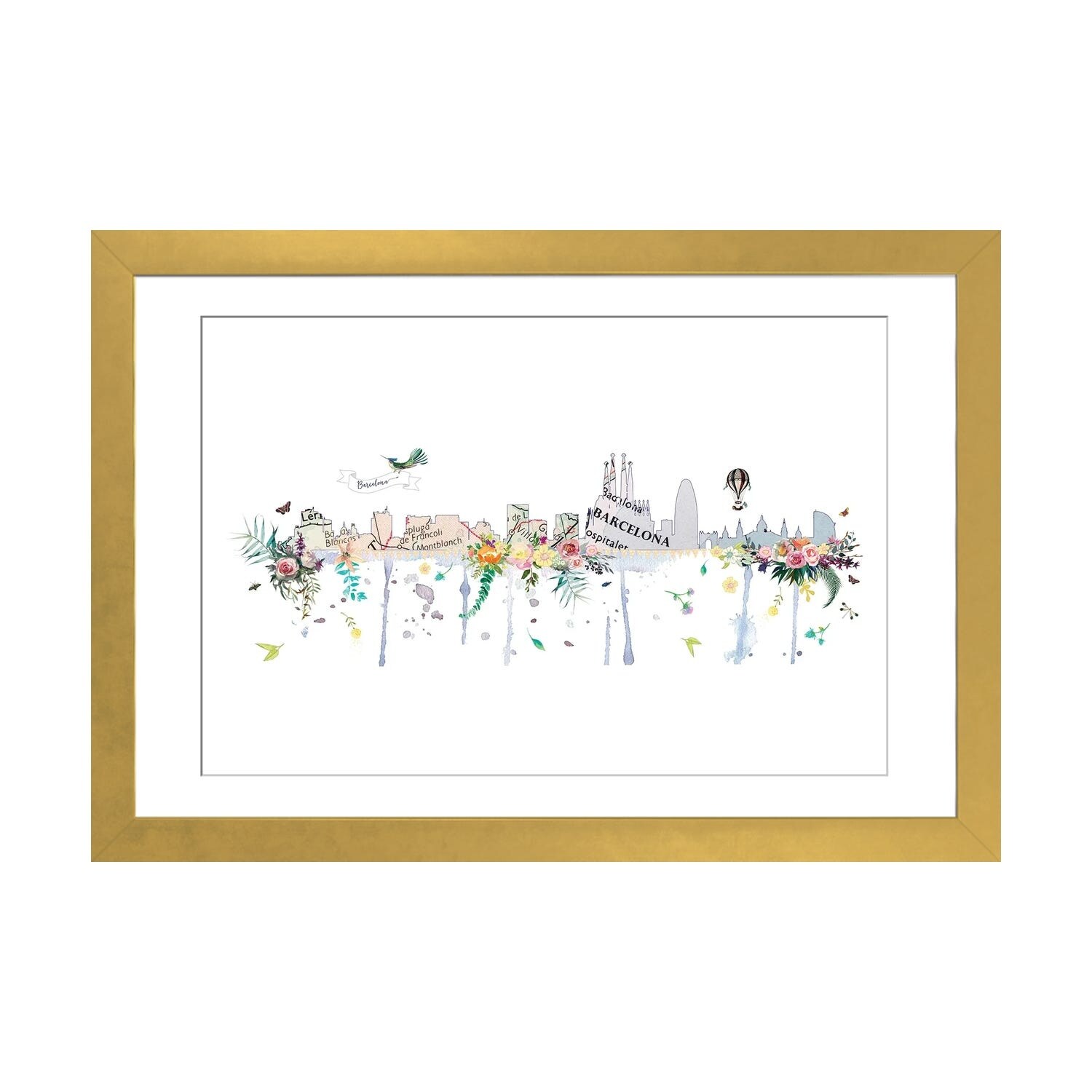 iCanvas "Barcelona Skyline in Watercolour Background" by Paul Rommer Canvas Print