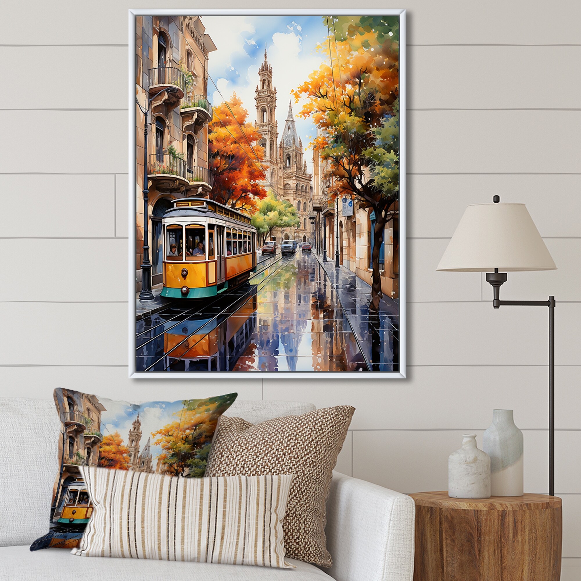 Designart "Spain Colorful Streets of Barcelona" Spain Framed Canvas Wall Art