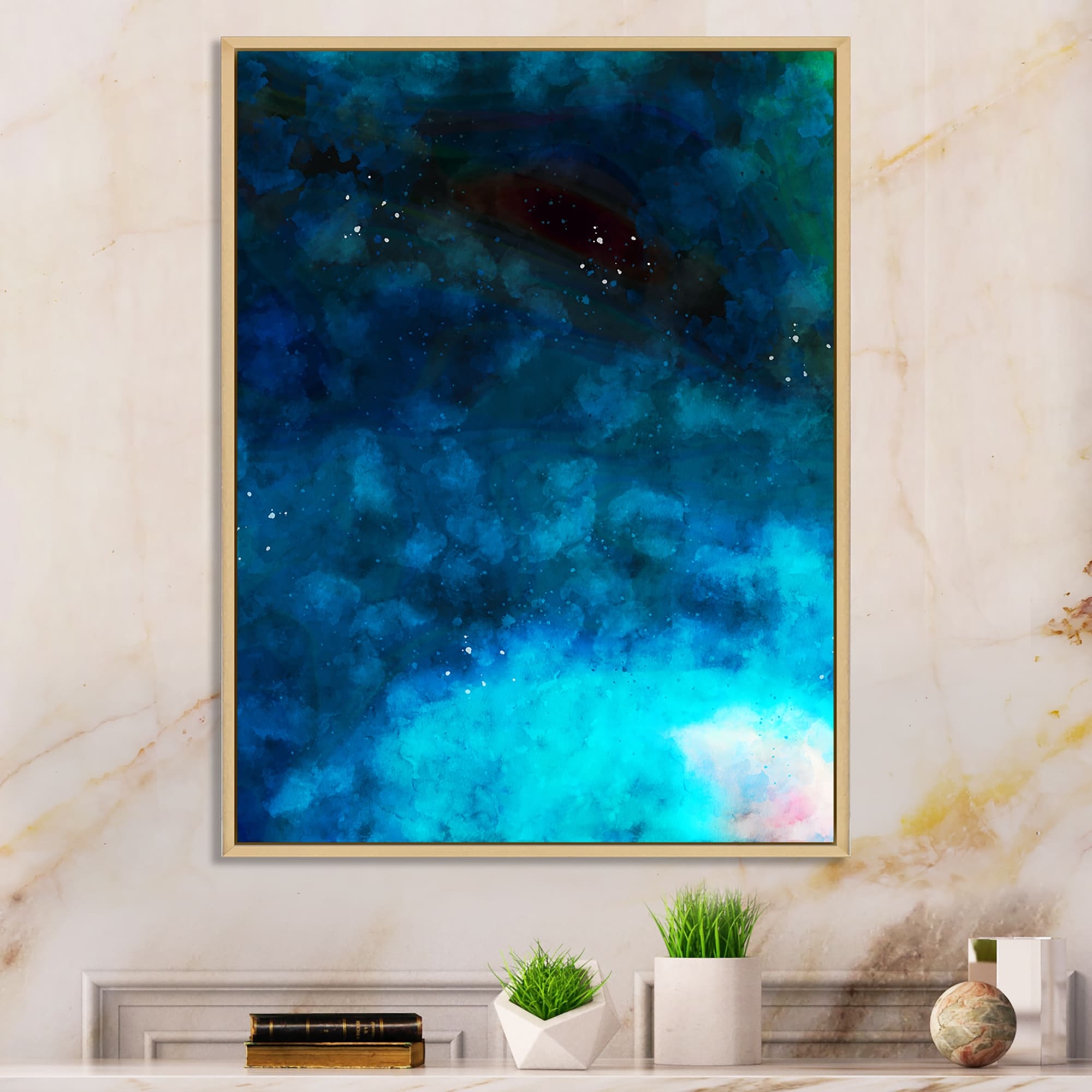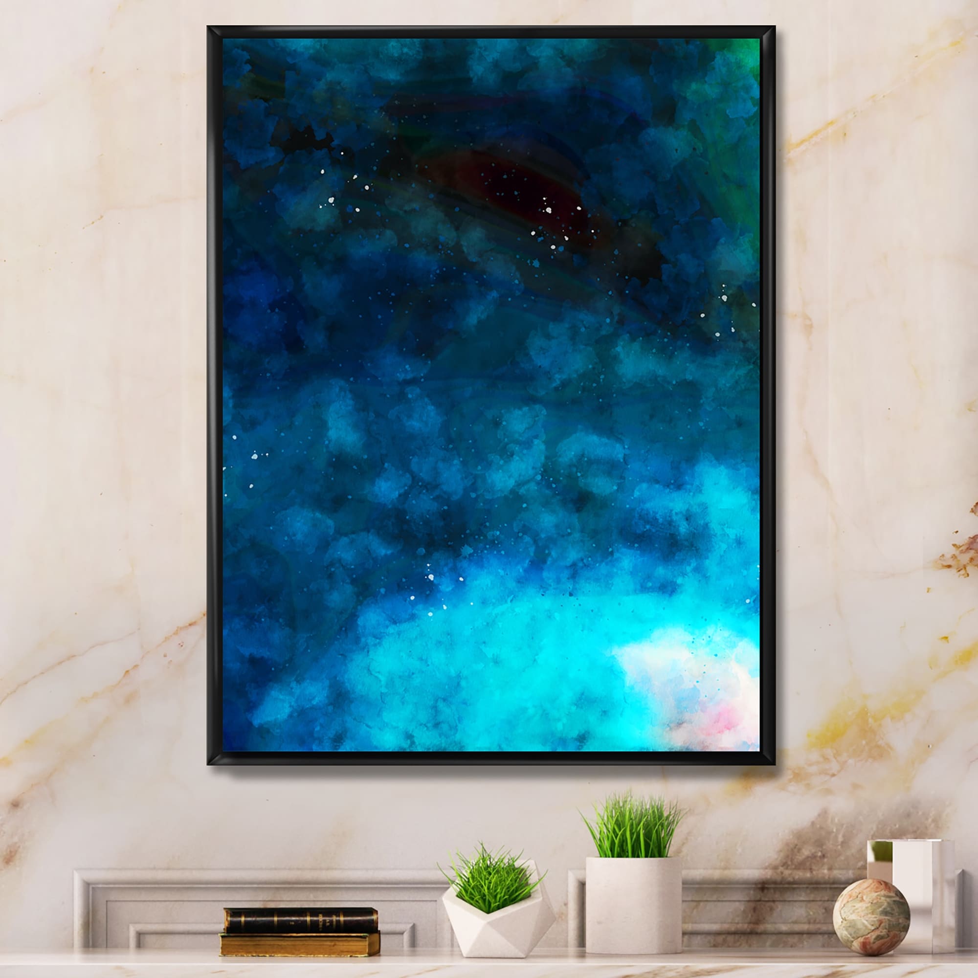 Designart "Abstract Blue Galaxy" Modern Framed Canvas Art Print
