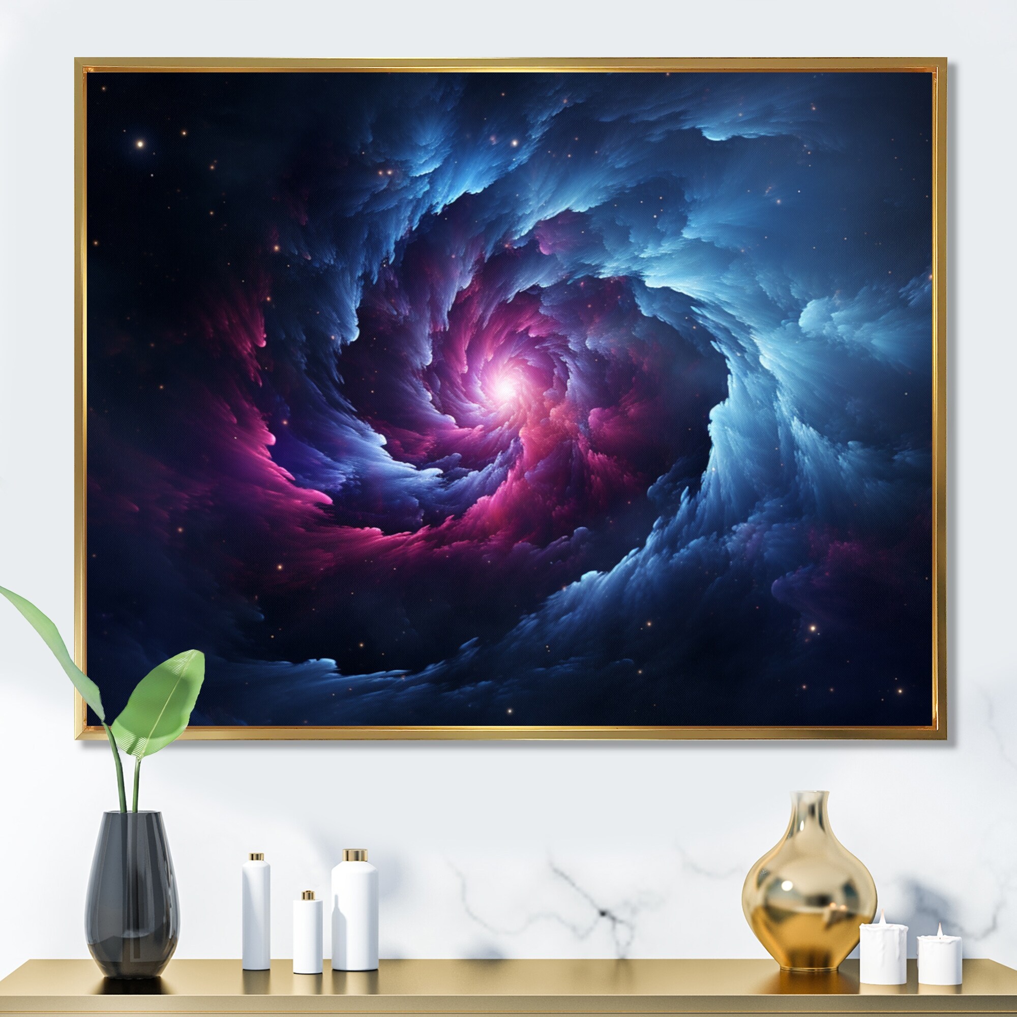Designart "Pink Blue Astronomical Dreams" Galaxies Framed Wall Art Prints